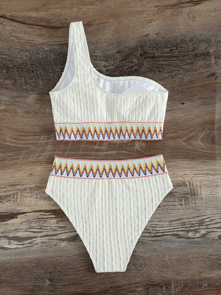 Summer Beach Stitch Detail One Shoulder High Waist Bikini