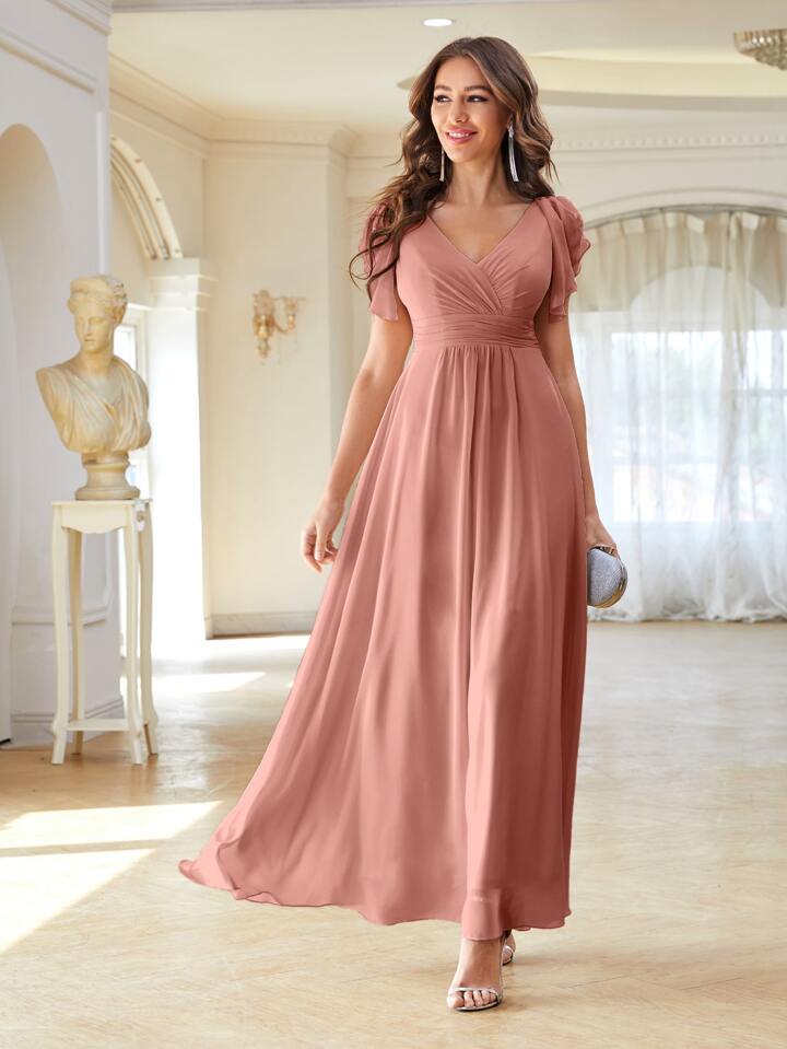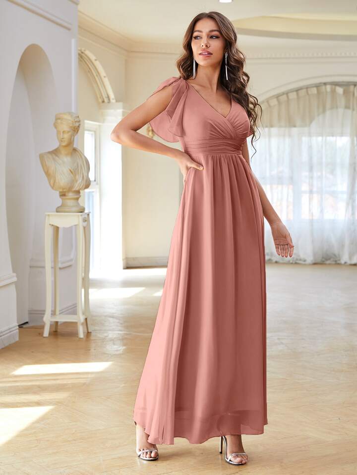 Surplice Front Butterfly Sleeve Chiffon Prom Dress