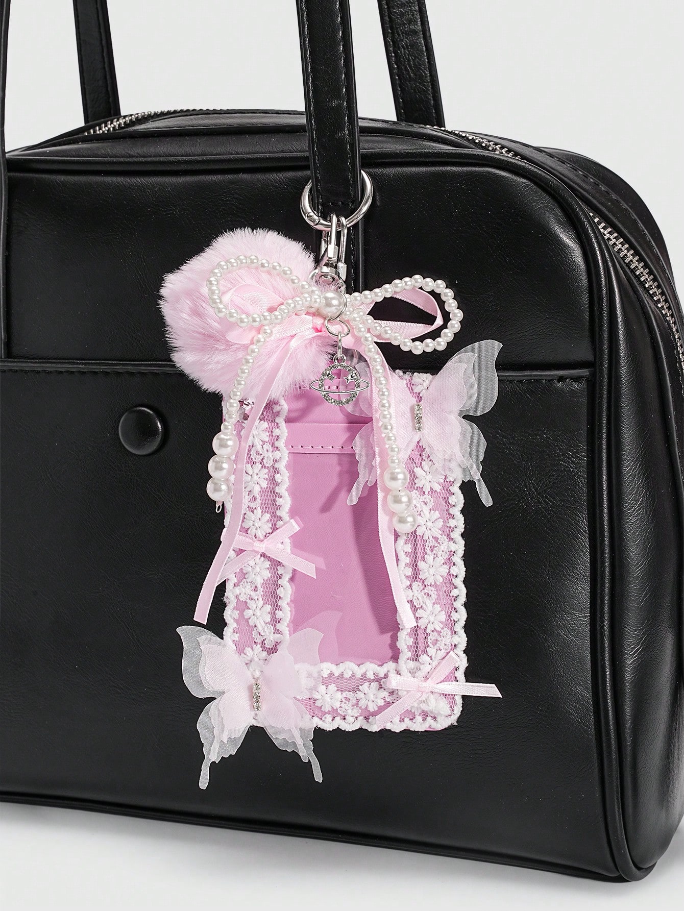 Sweetness 1 Pc Sweet Pink Bow With Card Holder, Girl's Heart Card Bag, Support Lace Bow Mesh Keychain Bag Pendant, Valentine's Day Back School Music Festival Gift