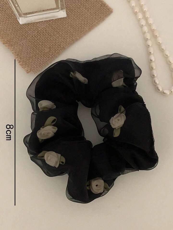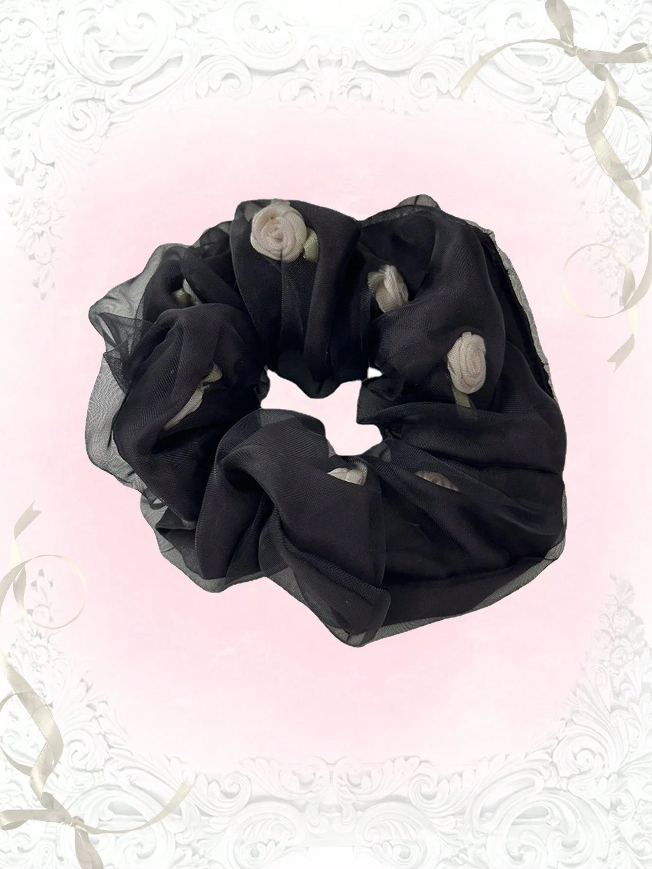 Sweetness 1pc Women Floral Decor Contrast Mesh Scrunchie