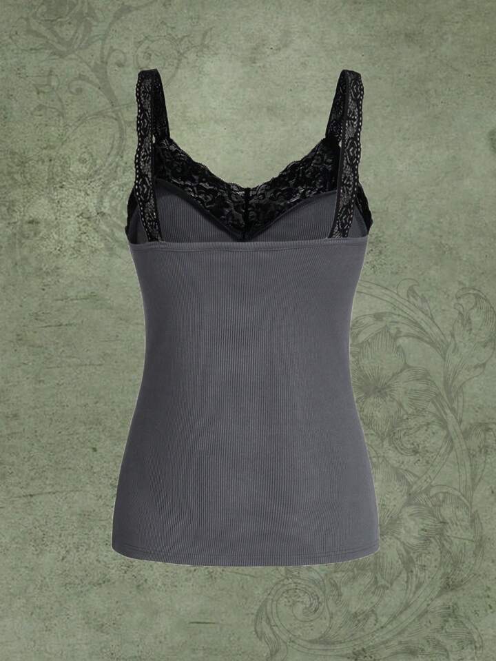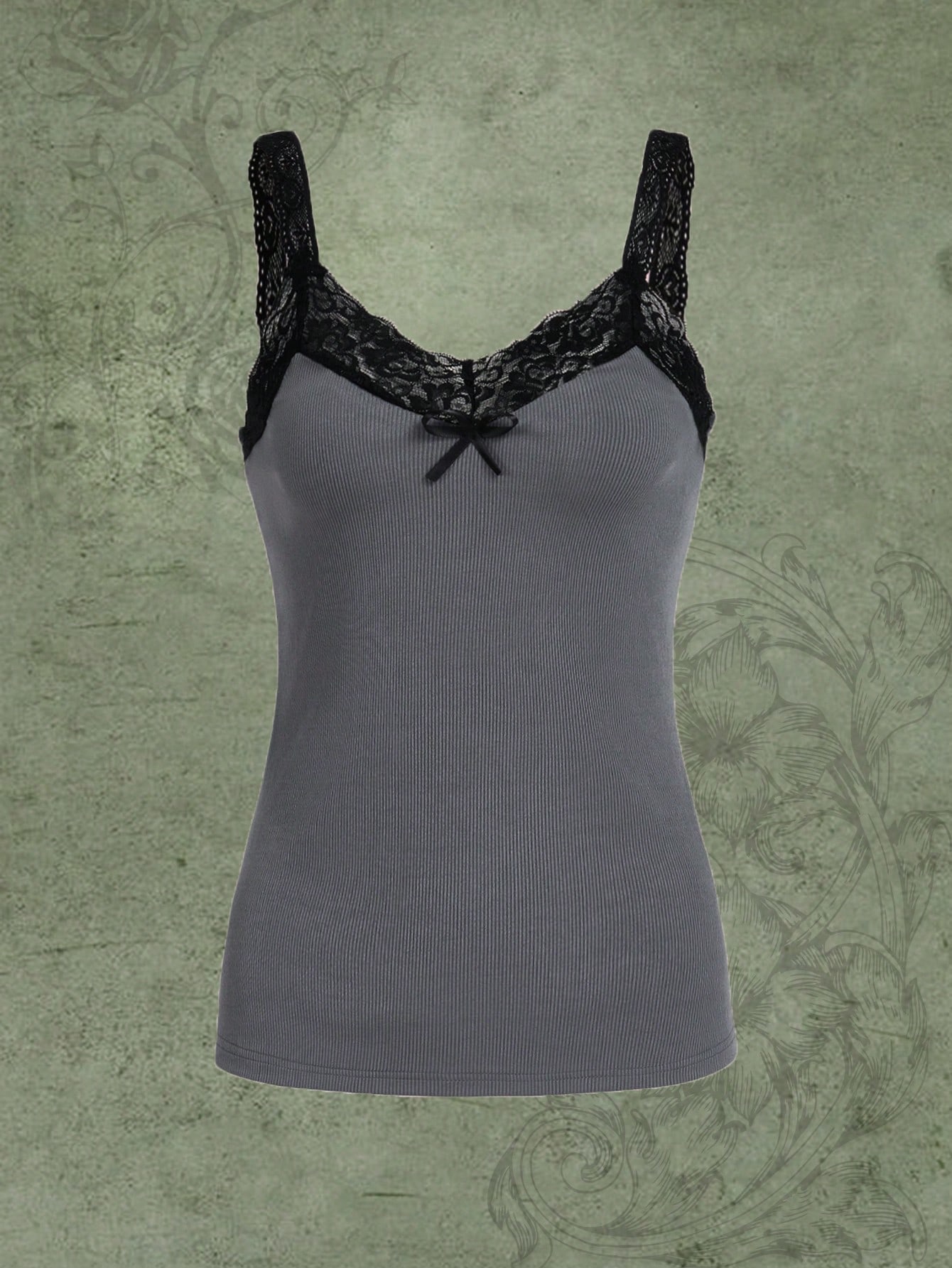 Sweetness Contrast Lace Bow Decor Ribbed Wide Strap Top