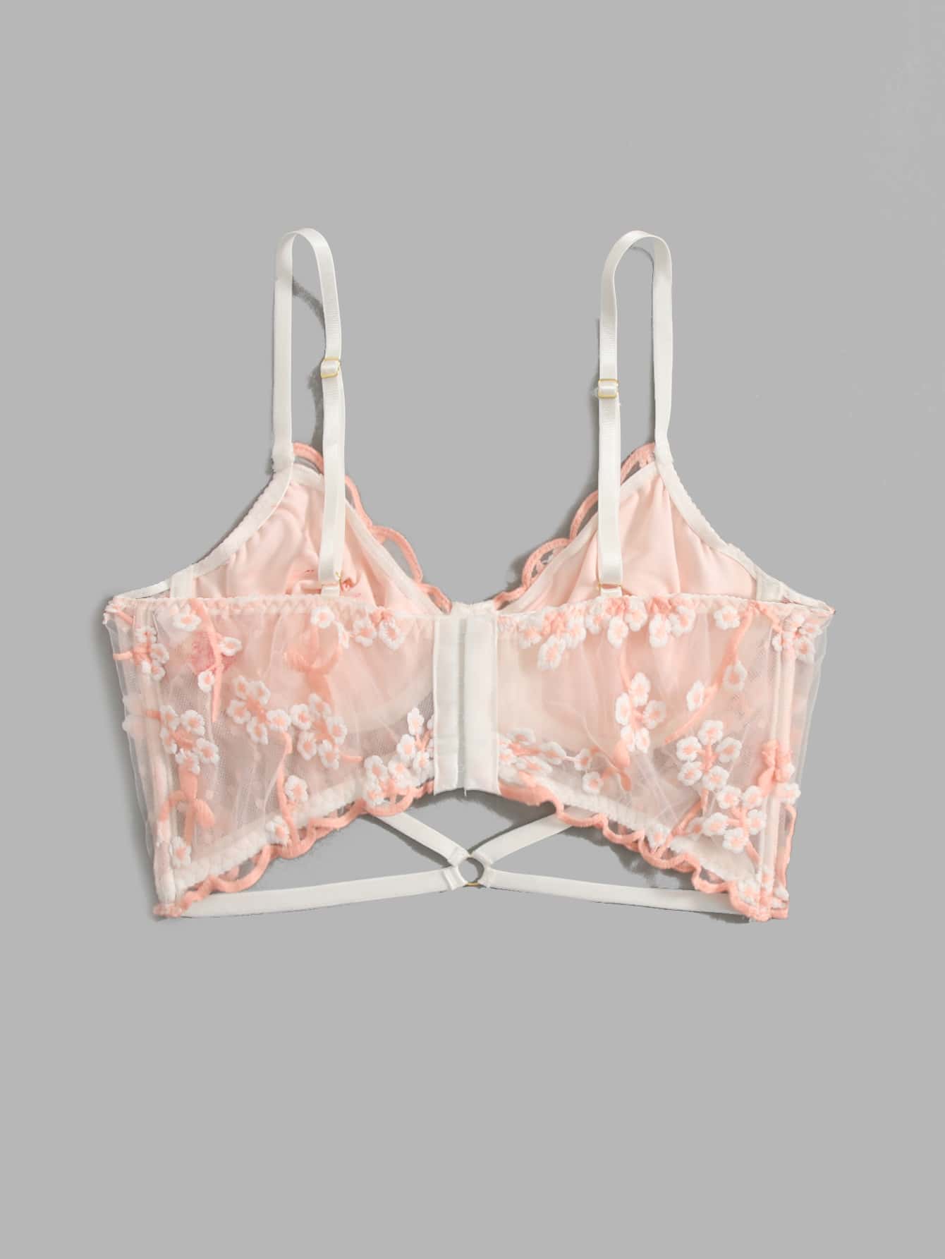 Sweetness Floral Embroidered Mesh Ring Linked Bra