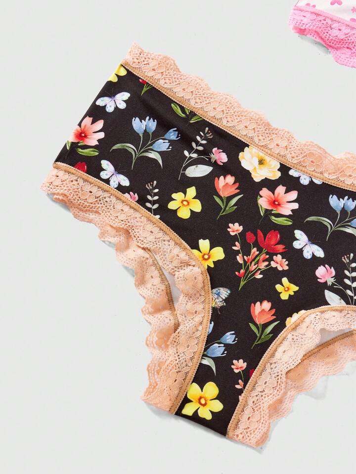 Sweetness Romantic Rose Series Lace Spliced Underwear, Set Of 3