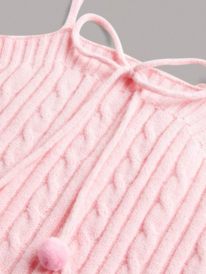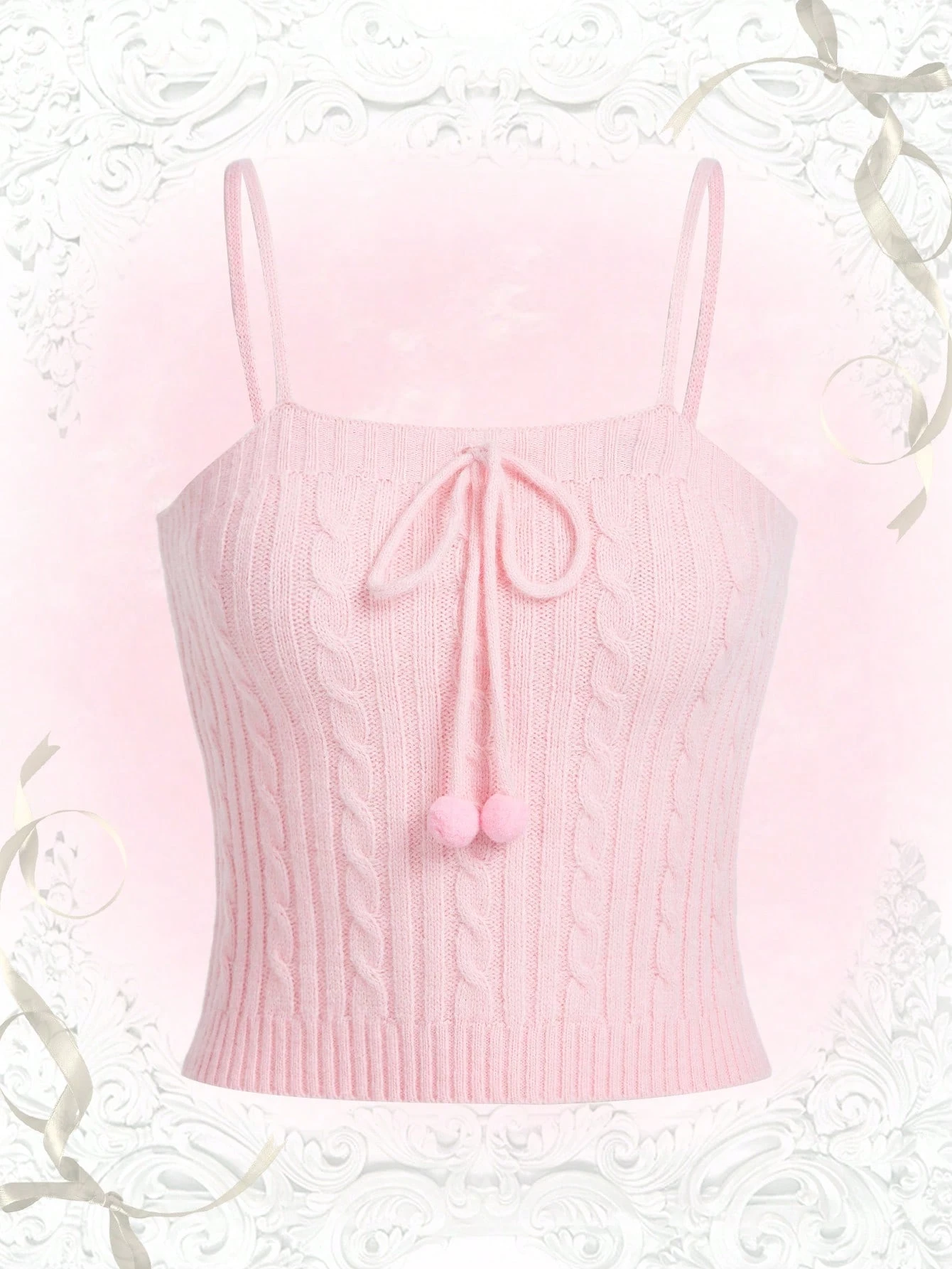 Sweetness Solid Pom Pom Cable Knit Cami Top