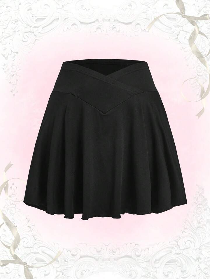 Sweetness Solid V Waist Pleated Hem Skirt