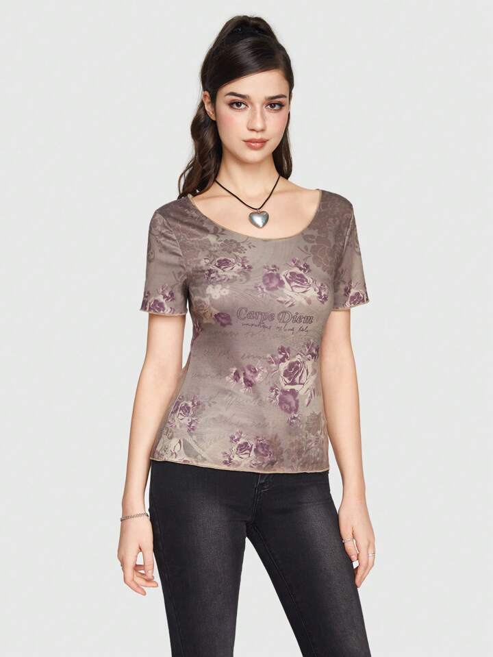 Sweetness Women's Vintage Floral Slim Fit T-shirt