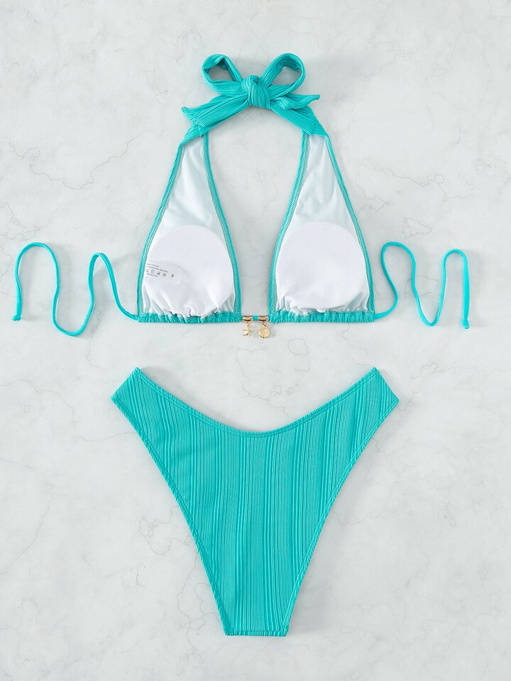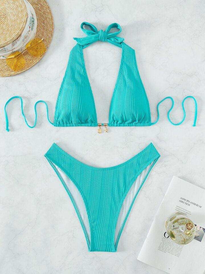 Swim Suits For Women Summer Beach Chain Linked Halter Triangle Bikini Set