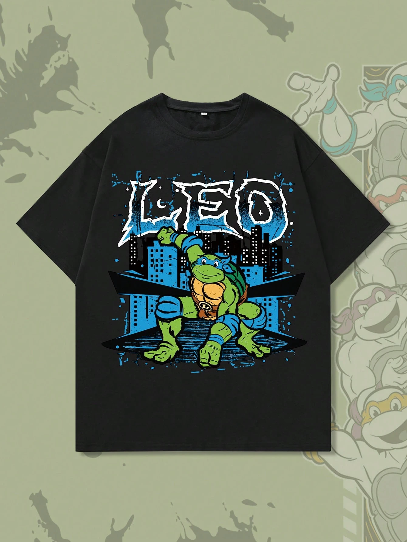 TEENAGE MUTANT NINJA TURTLES X ROMWE Men's Casual Comfortable Cartoon Pattern Short Sleeve T-Shirt, Autumn/Winter