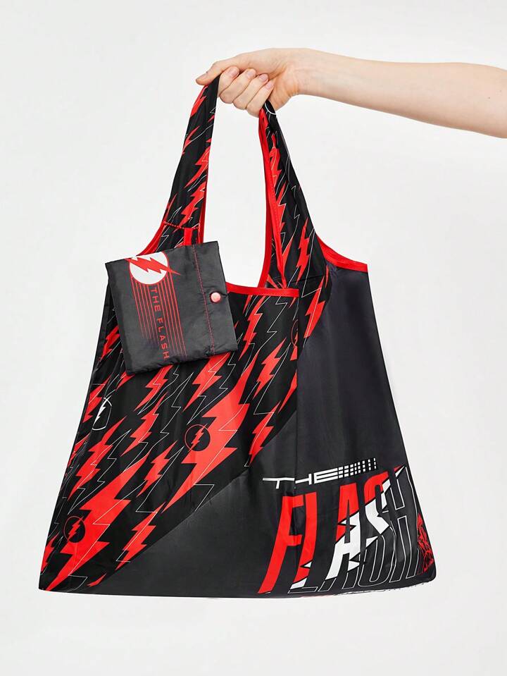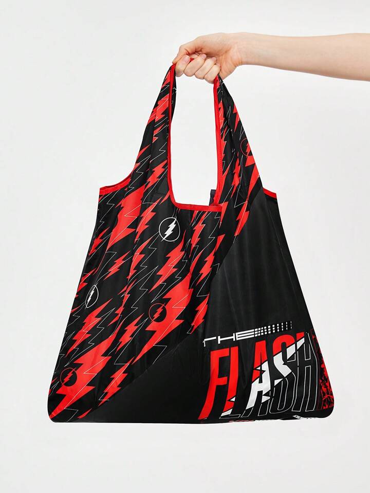 THE FLASH X ROMWE Large Capacity Foldable Shopping Tote Bag With Letter Print, Portable