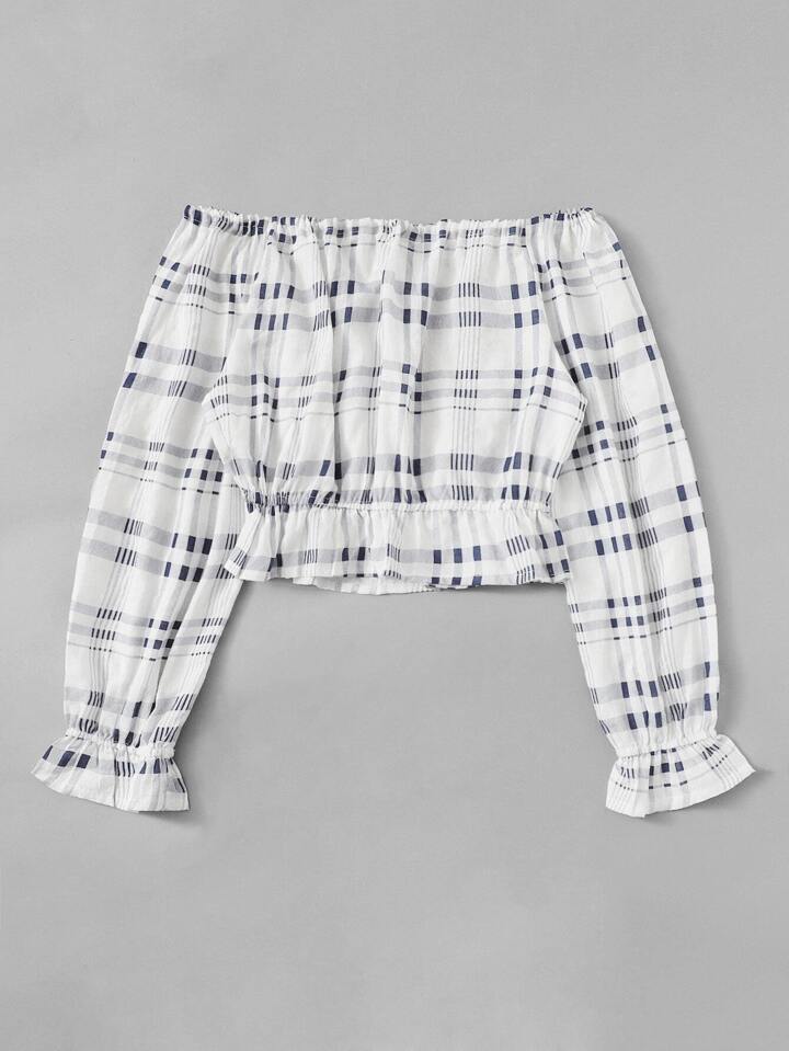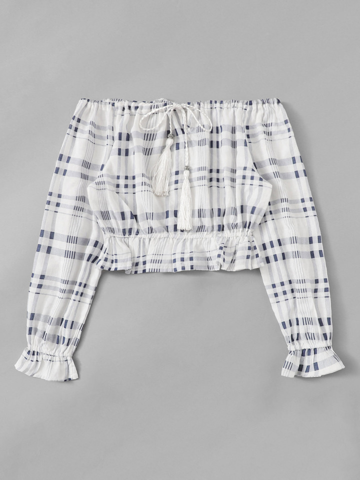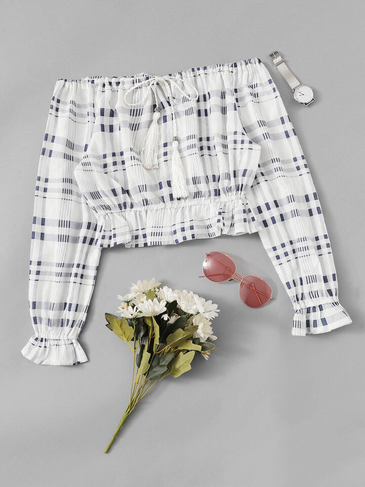 Tartan Plaid Tassel Tie Bardot Top