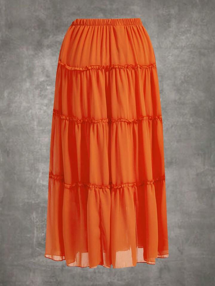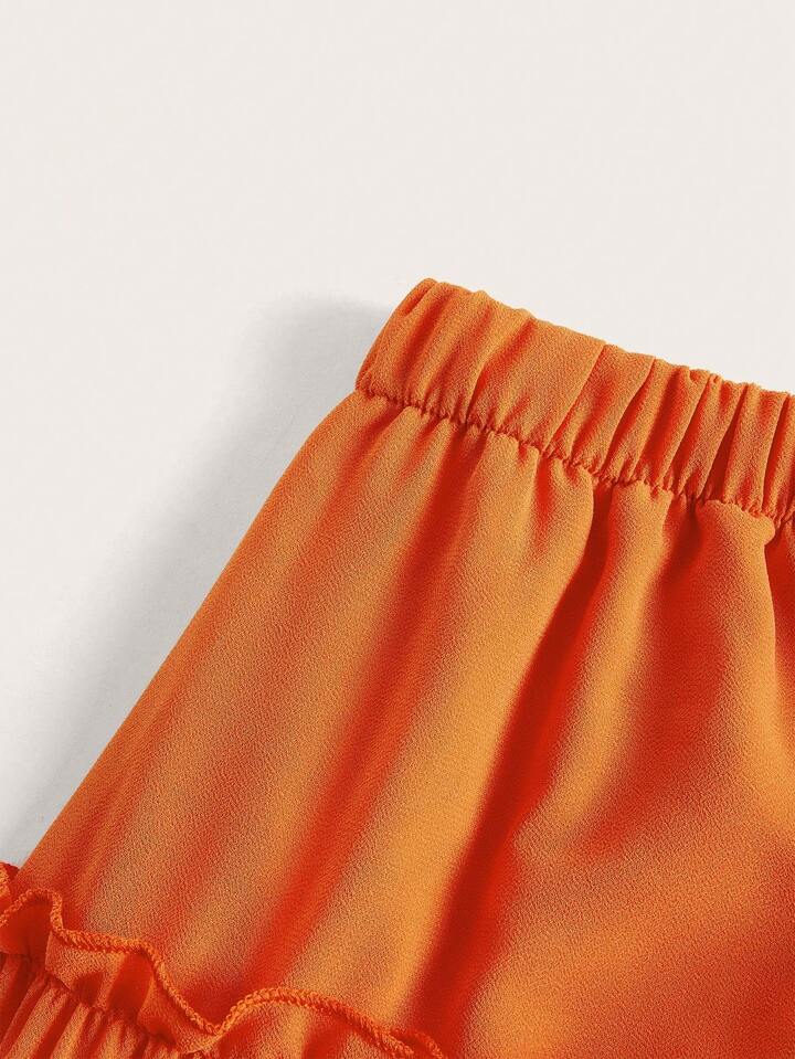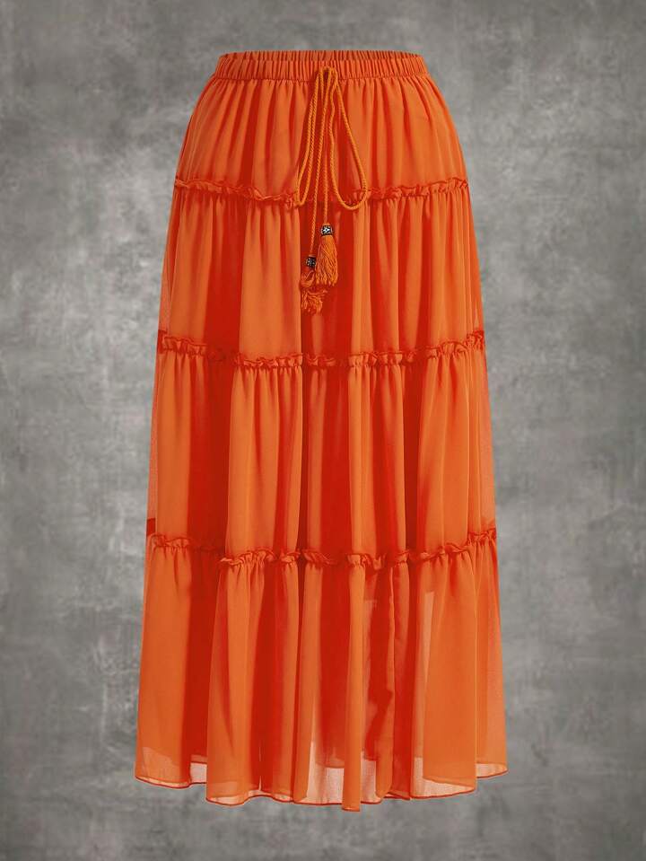 Tassel Tie Waist Frill Trim Ruffle Hem Skirt