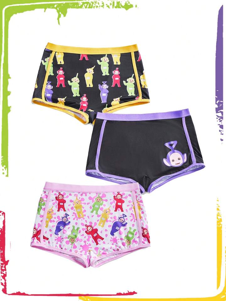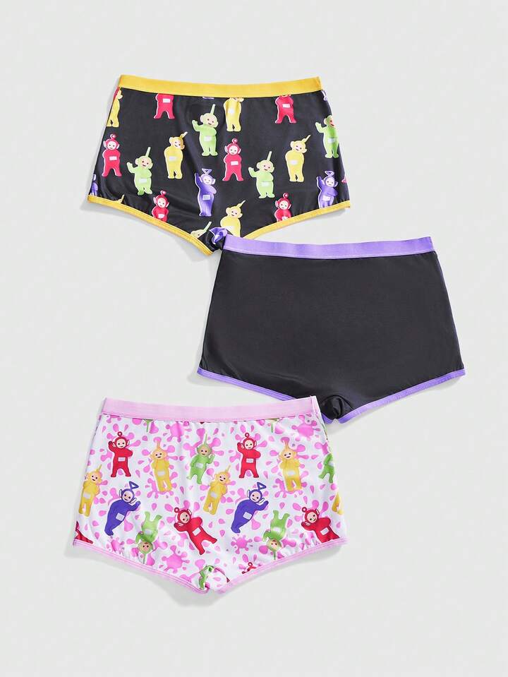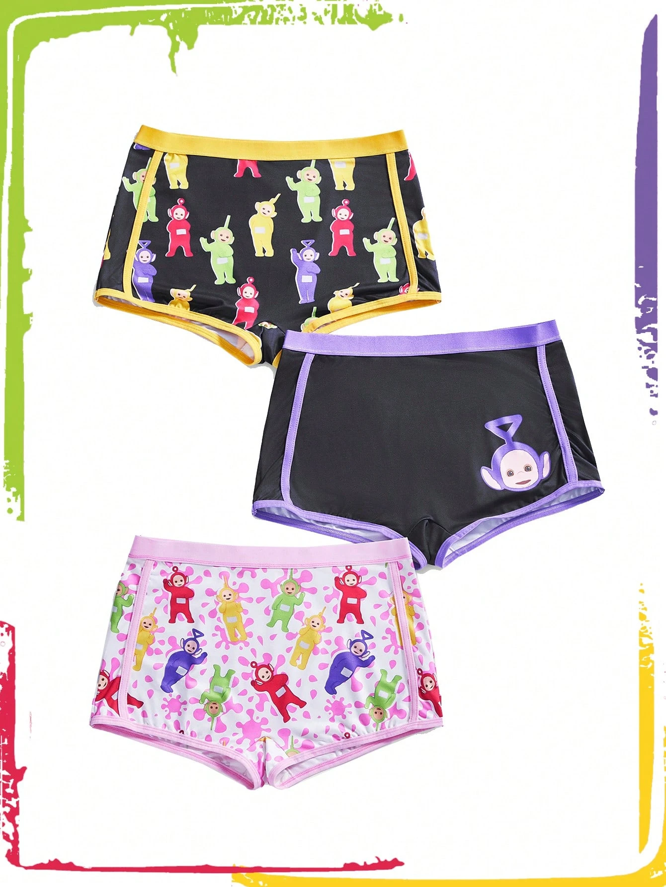 Teletubbies X ROMWE 3pcs Women's Funny Cartoon Pattern Contrast Trim Panties