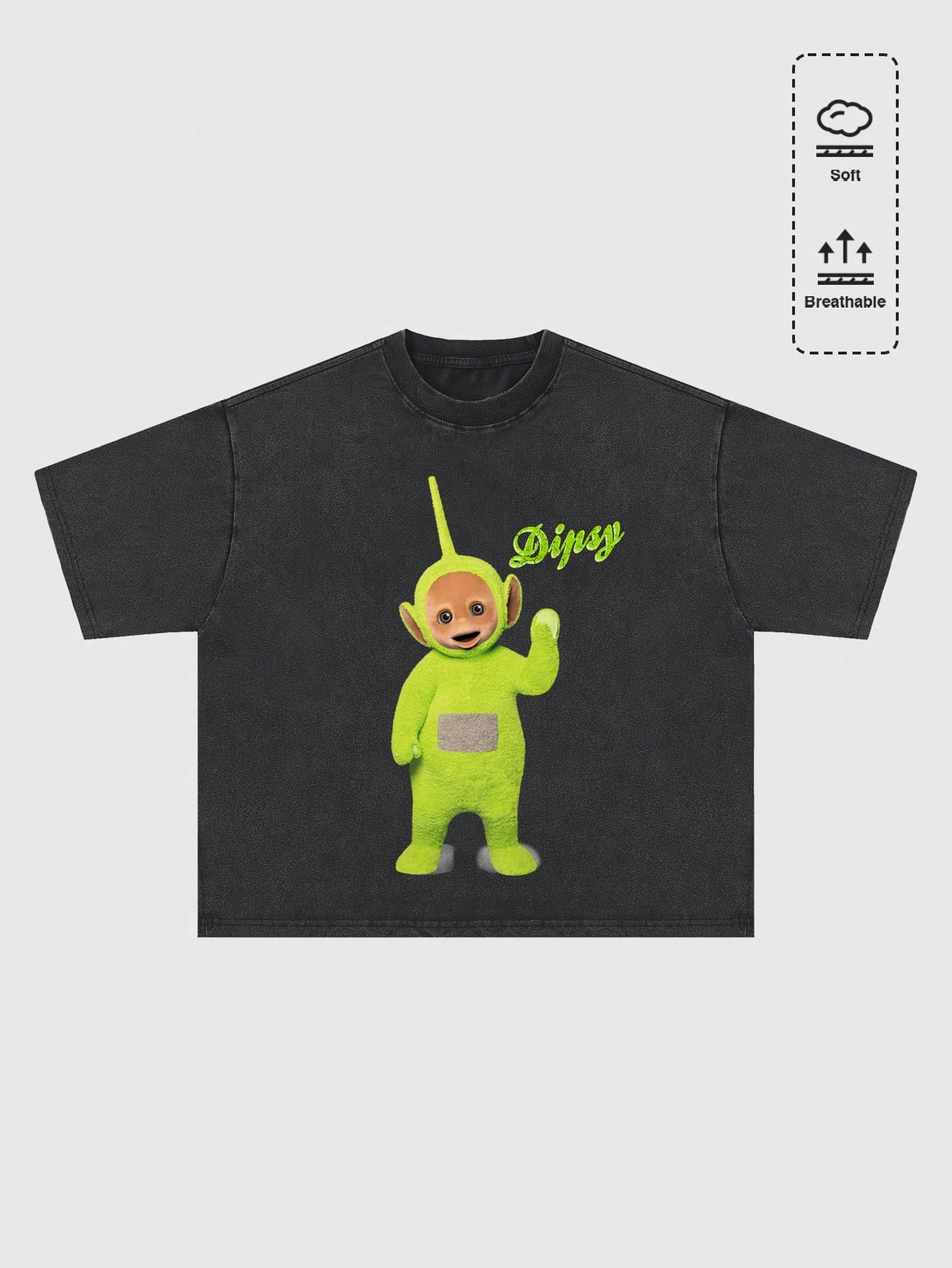 Teletubbies X ROMWE Men Vintage Wash Dipsy Graphic Loose Fit T-Shirt