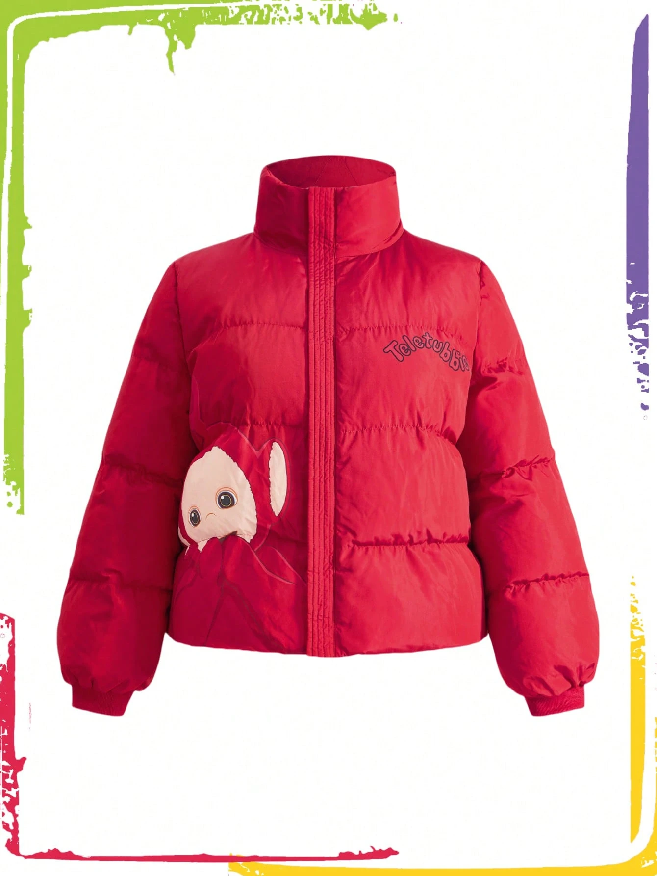 Teletubbies X ROMWE Plus Size Winter Warm Letter & Cartoon Pattern Stand Collar Padded Coat