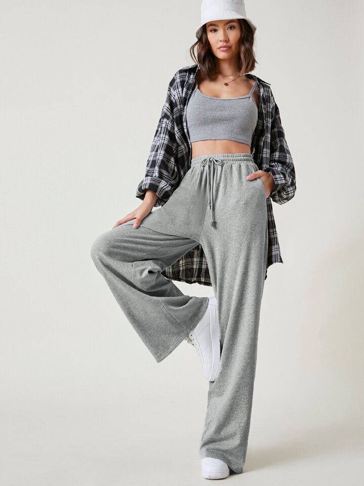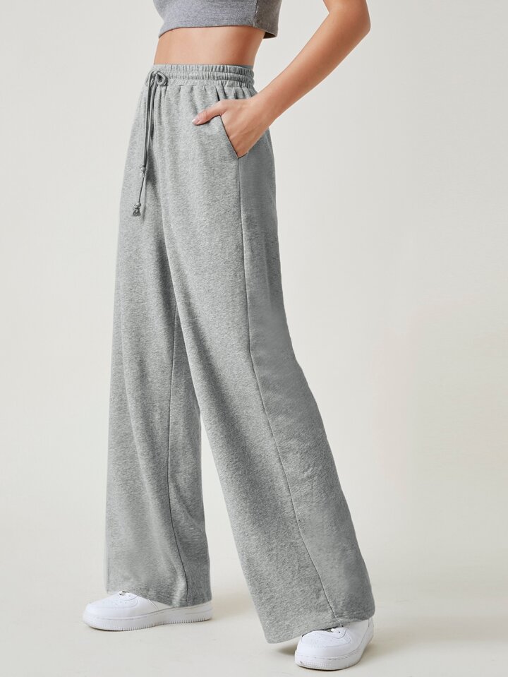 Terry Fleece Wide Leg Drawstring Waist Pants