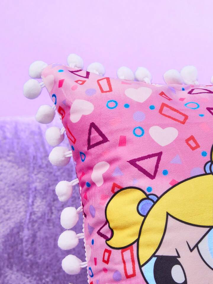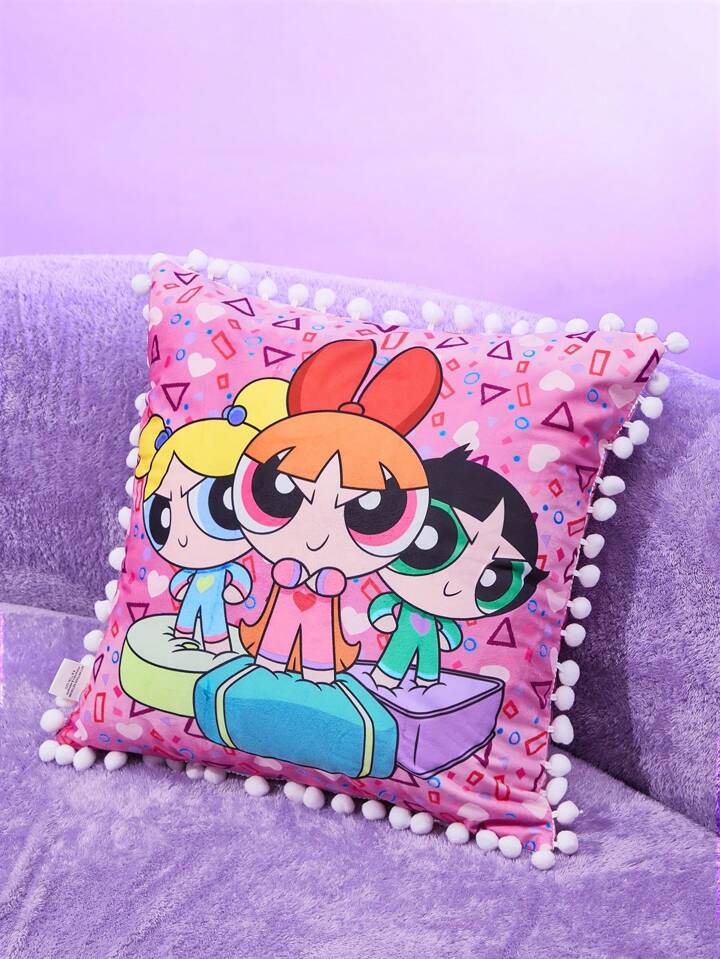 The Powerpuff Girls | ROMWE 1pc Cartoon Graphic Cushion Cover Without Filler,Cute Washable Decorative Square Pillowcase