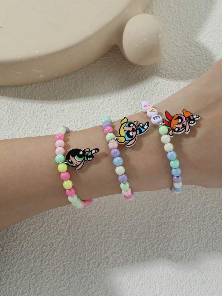 The Powerpuff Girls | ROMWE 3 Piece Beaded Alphabet Bracelet