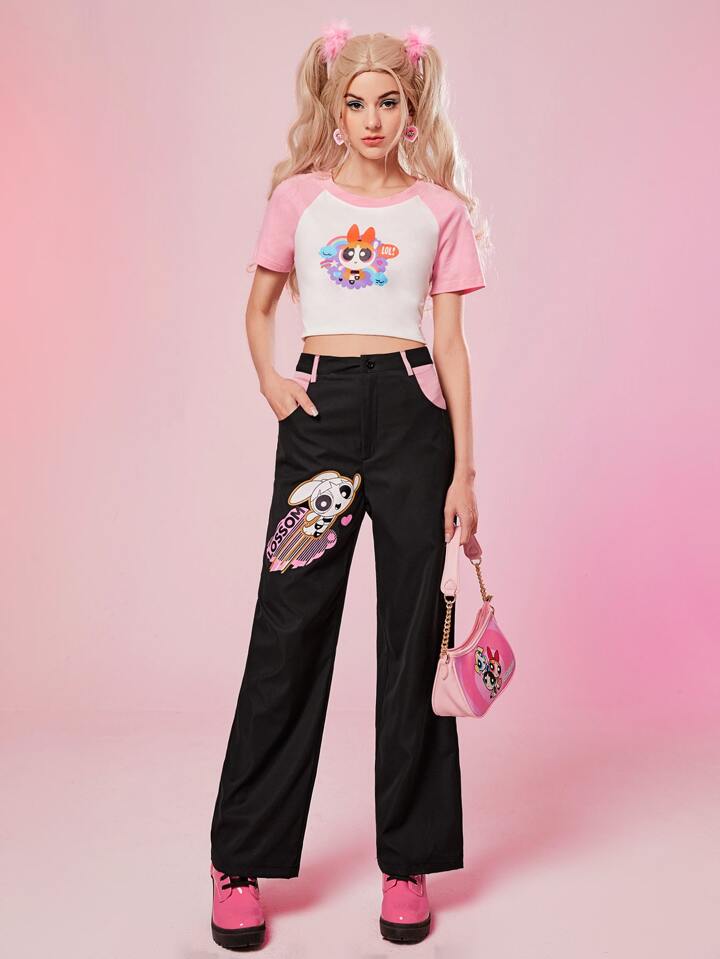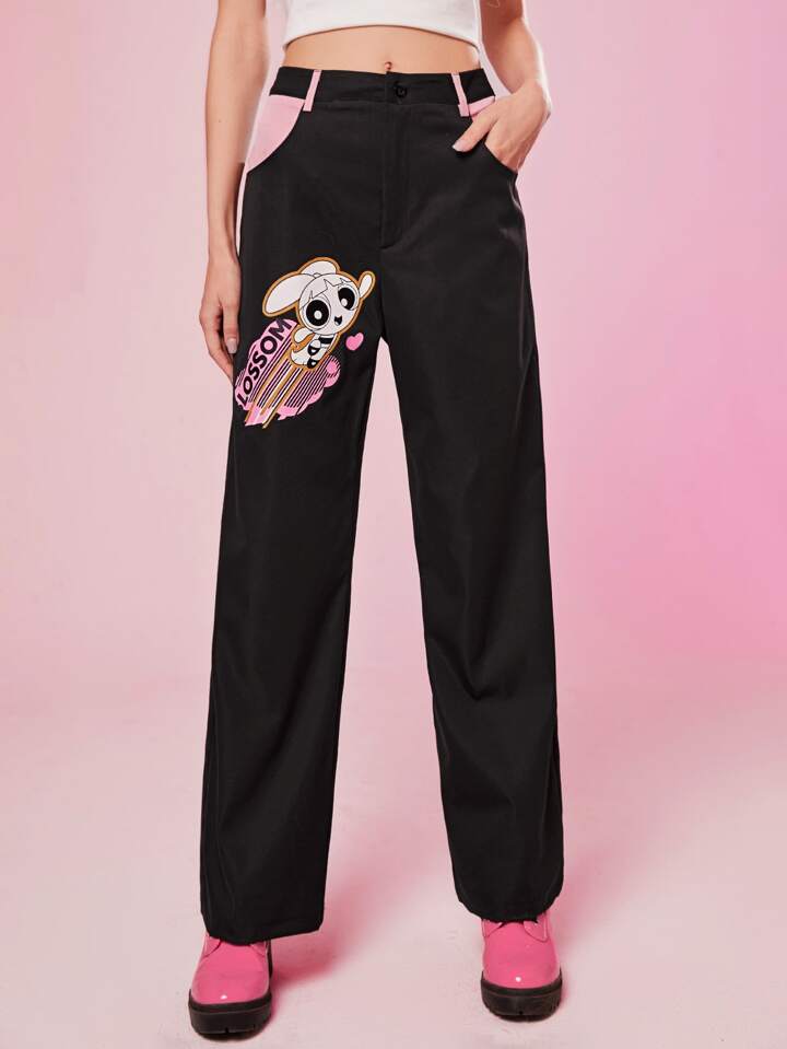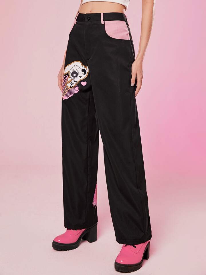 The Powerpuff Girls | ROMWE Cartoon Graphic Straight Leg Pants