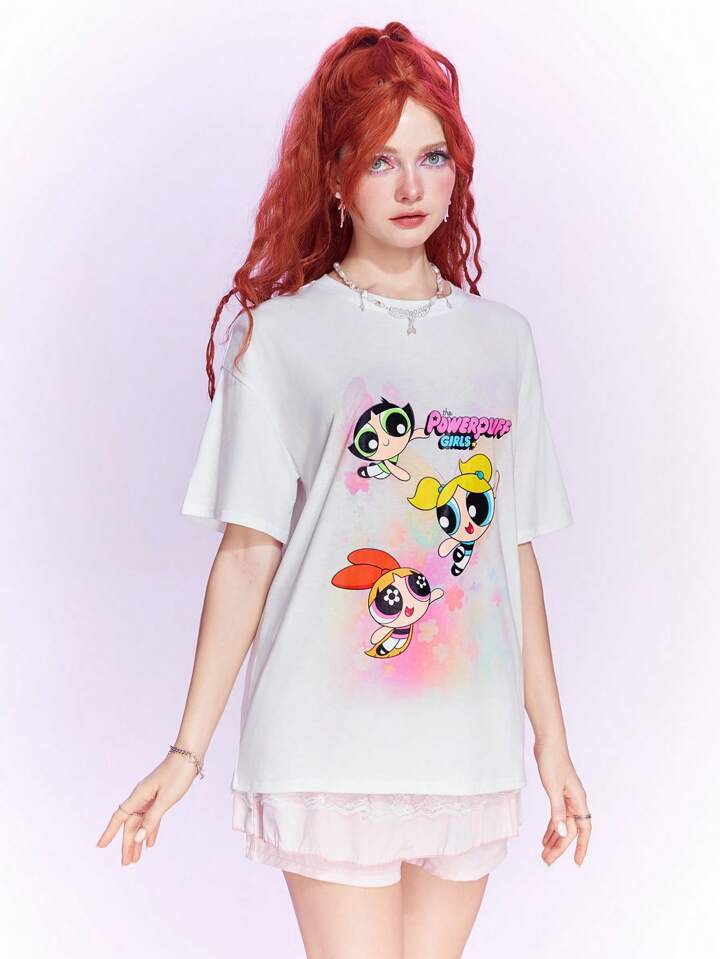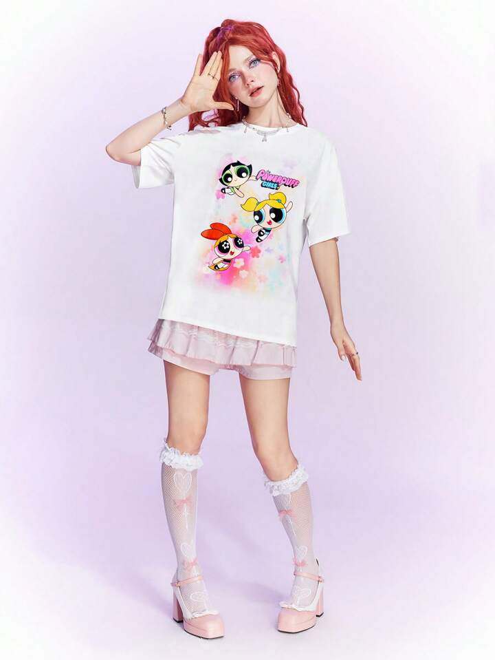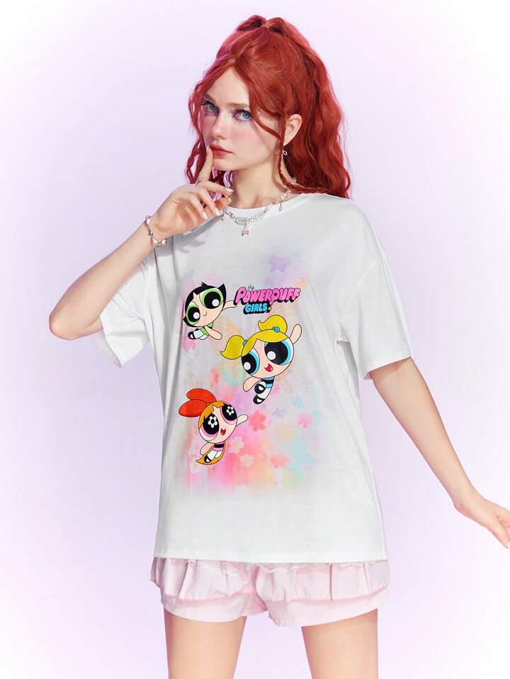 The Powerpuff Girls | ROMWE Letter & Cartoon Graphic Tee