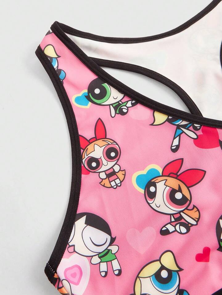 The Powerpuff Girls | ROMWE Plus Cartoon Graphic Contrast Binding Racerback Lingerie Set