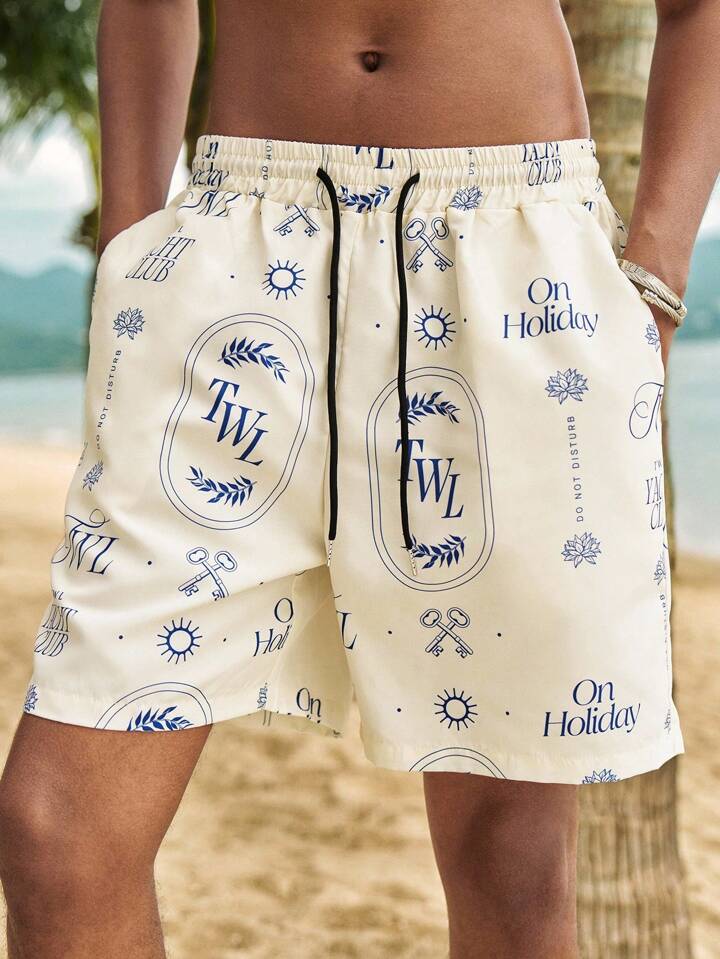 The White Lotus Men's Street Life Printed Woven Casual Shorts, Suitable For Spring/Summer
