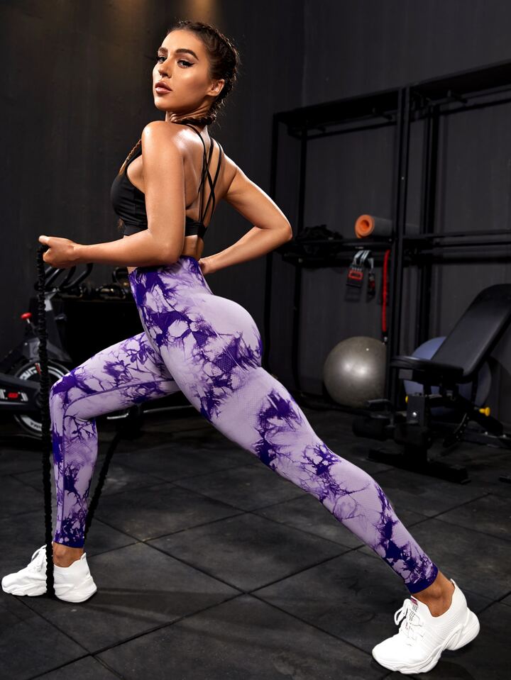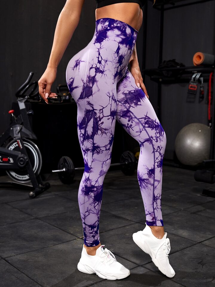 Tie Dye Yoga Leggings Seamless High Stretch Scrunch Butt Gym Leggings With Whipstitch Side