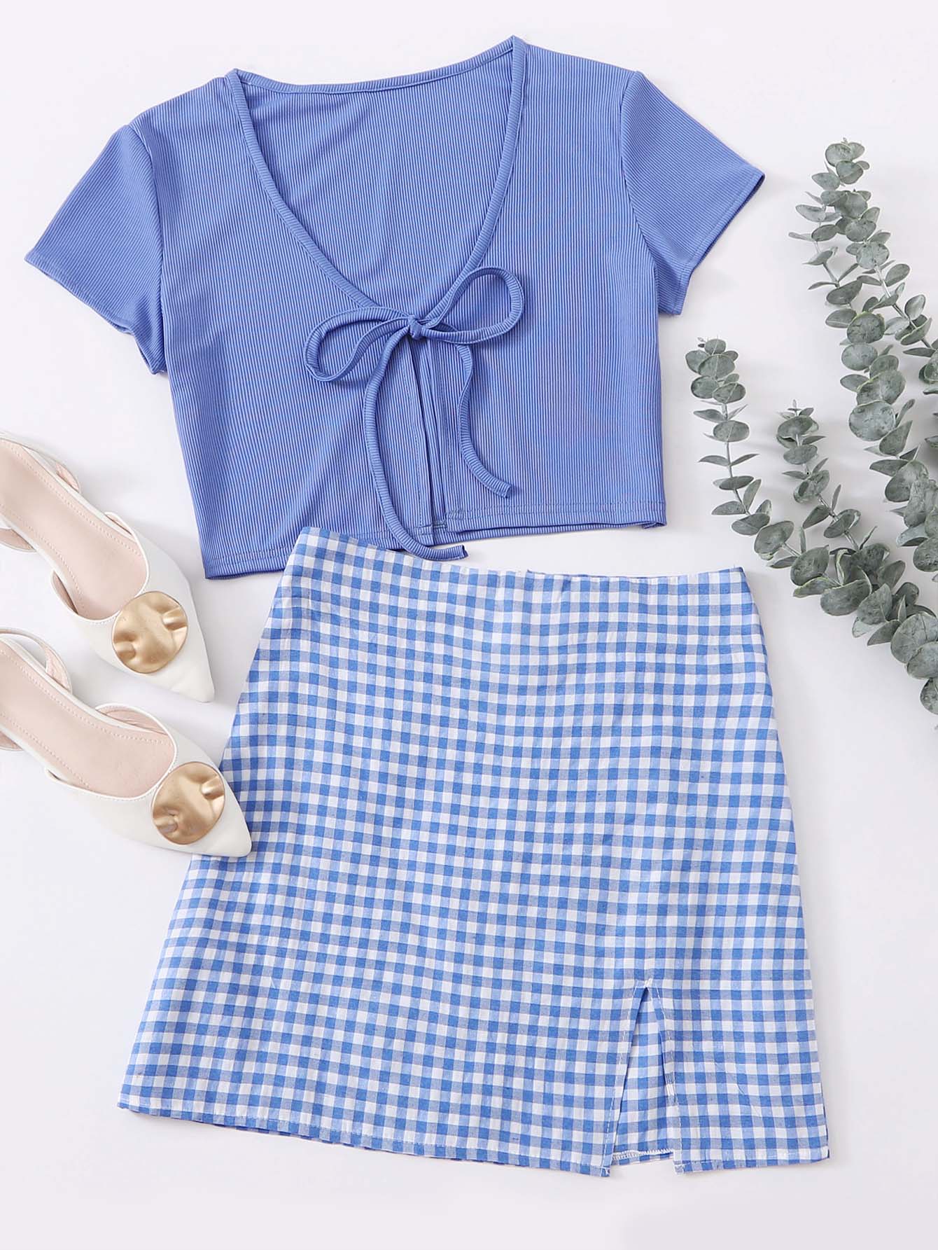 Tie Front Top & Gingham Skirt