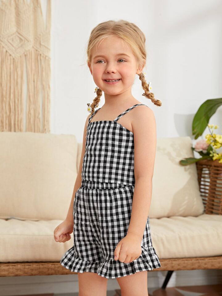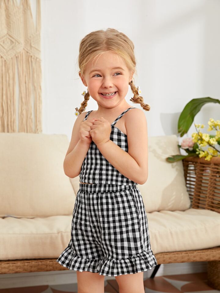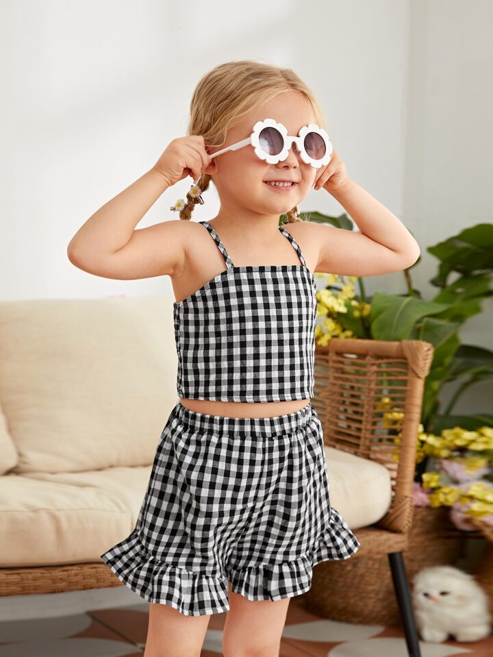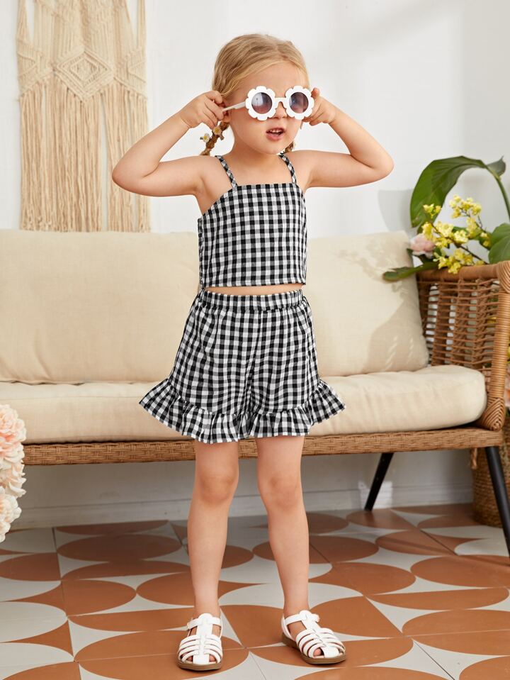 Toddler Girls Gingham Crop Cami Top & Ruffle Shorts Set