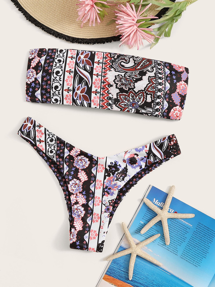 Tribal Lace Up Bandeau With High Cut Bikini Set