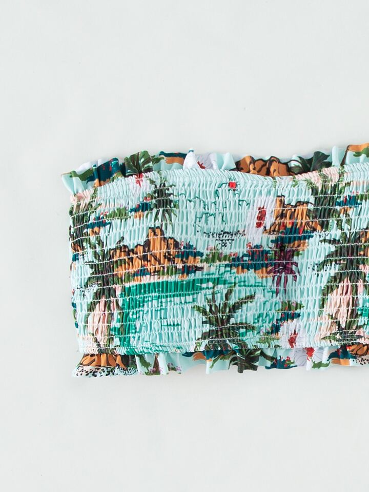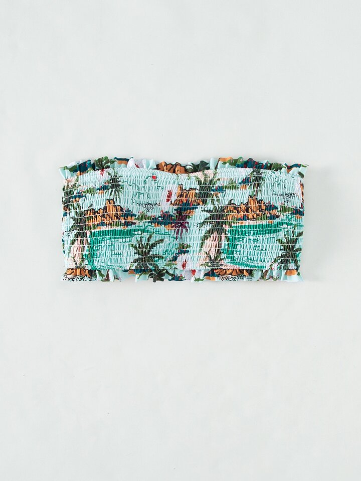 Tropical Print Bandeau Bikini Top Strapless Bikini Top