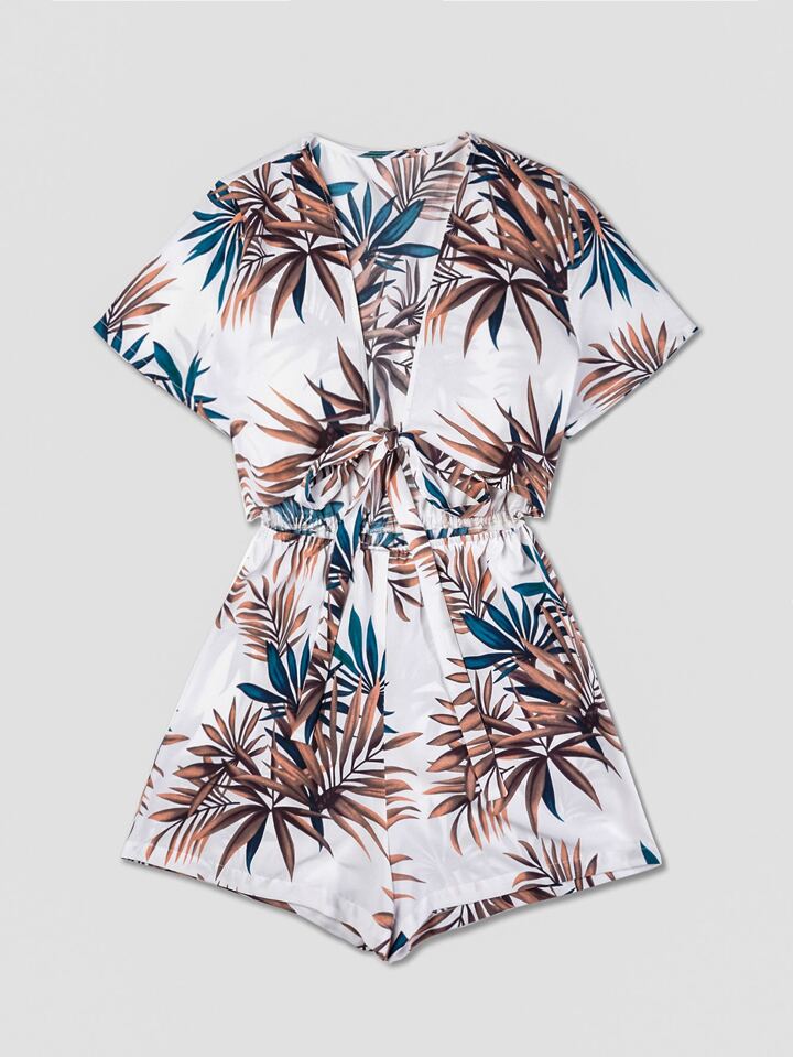 Tropical Print Knot Front Romper