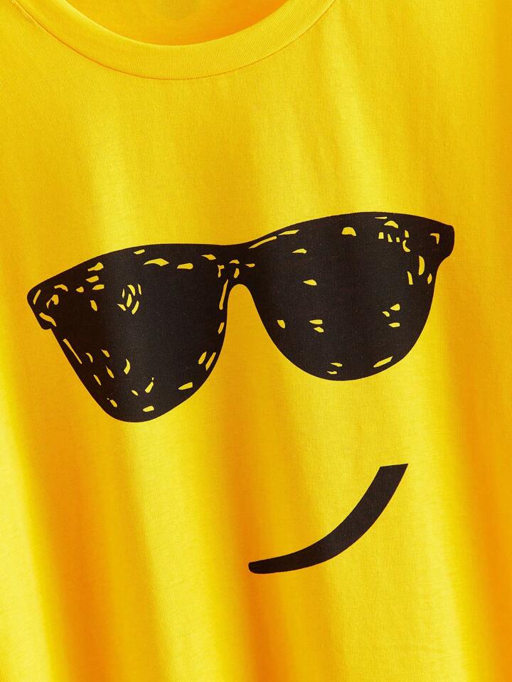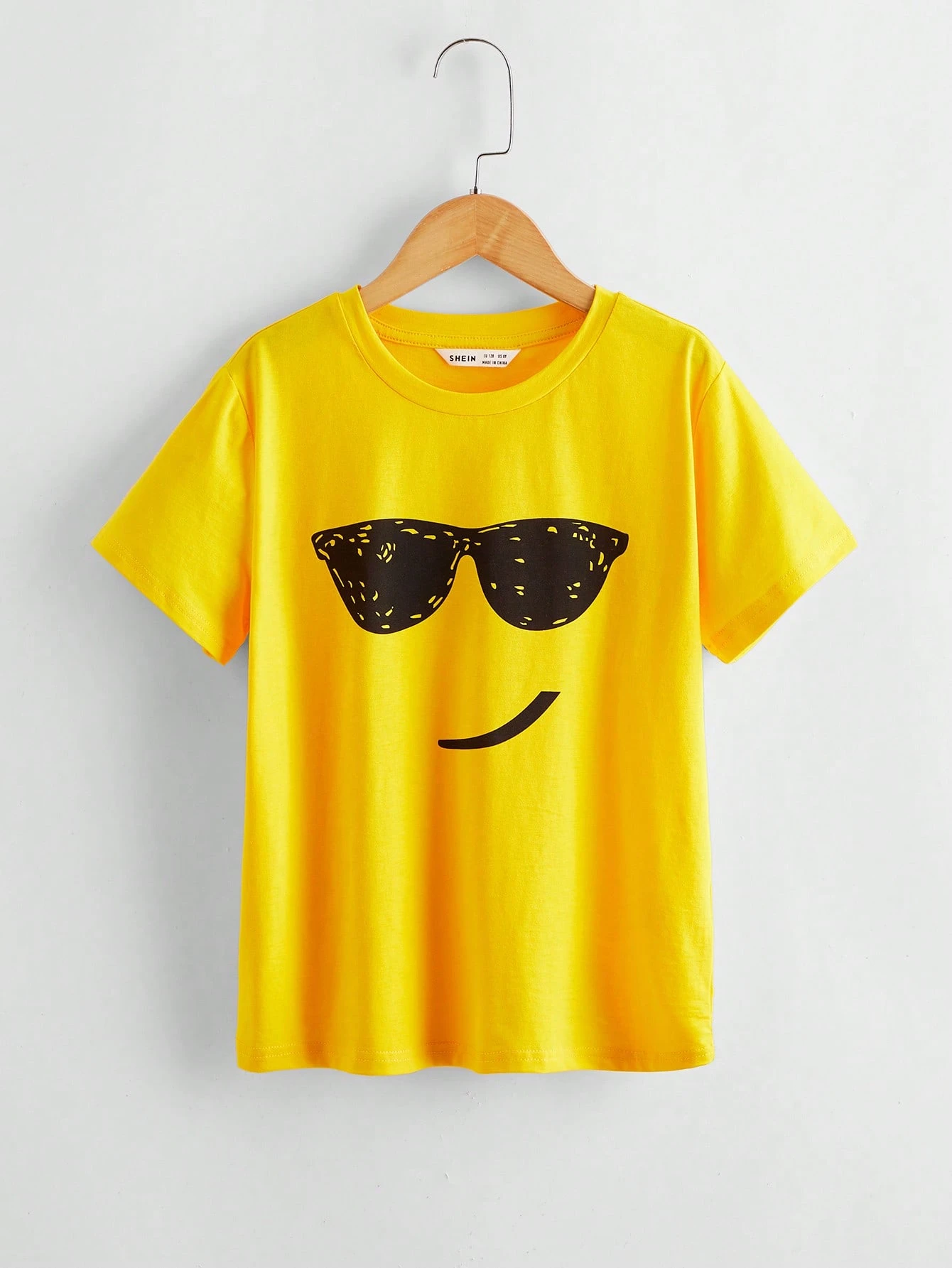 Tween Boy Glasses Graphic Print Round Neck Knit T-Shirt