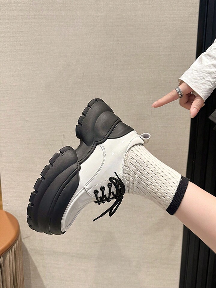 Two Tone Lace-up Front Flatform Oxford Shoes