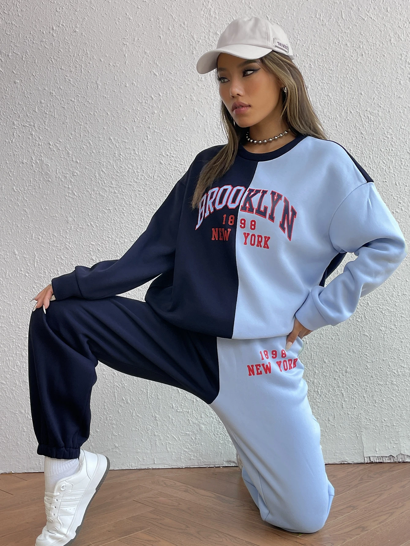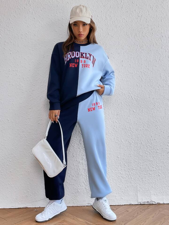 Two Tone Letter Graphic Drop Shoulder Pullover & Sweatpants