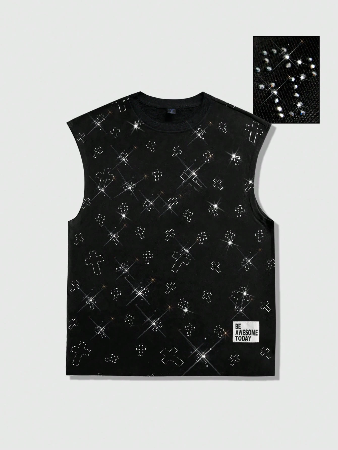 Unisex Casual Fashionable Rhinestone Embellished Sleeveless Tank Top, Sports & Leisure Crew Neck Tank Top