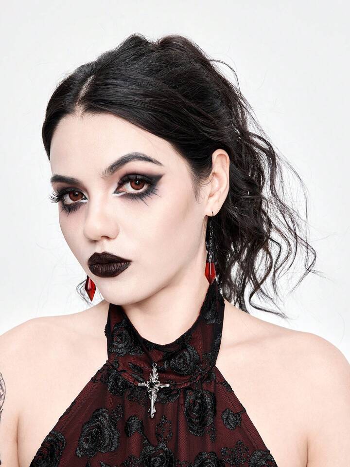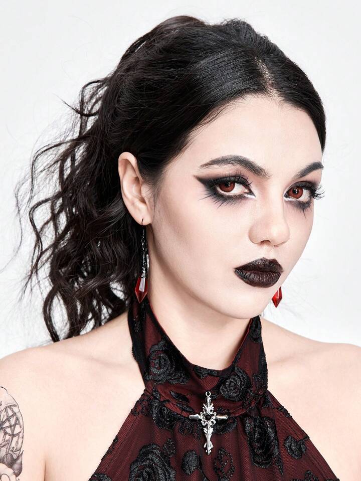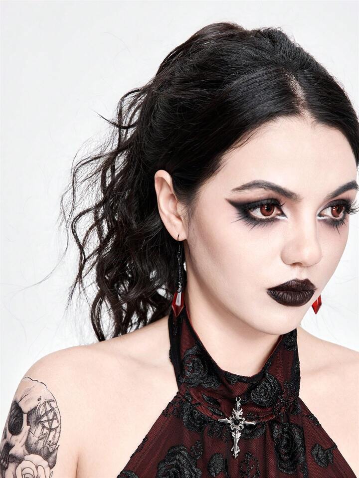 (Vampire Gothic Consignment) 1pair Gothic Style Black And Red Women Earrings