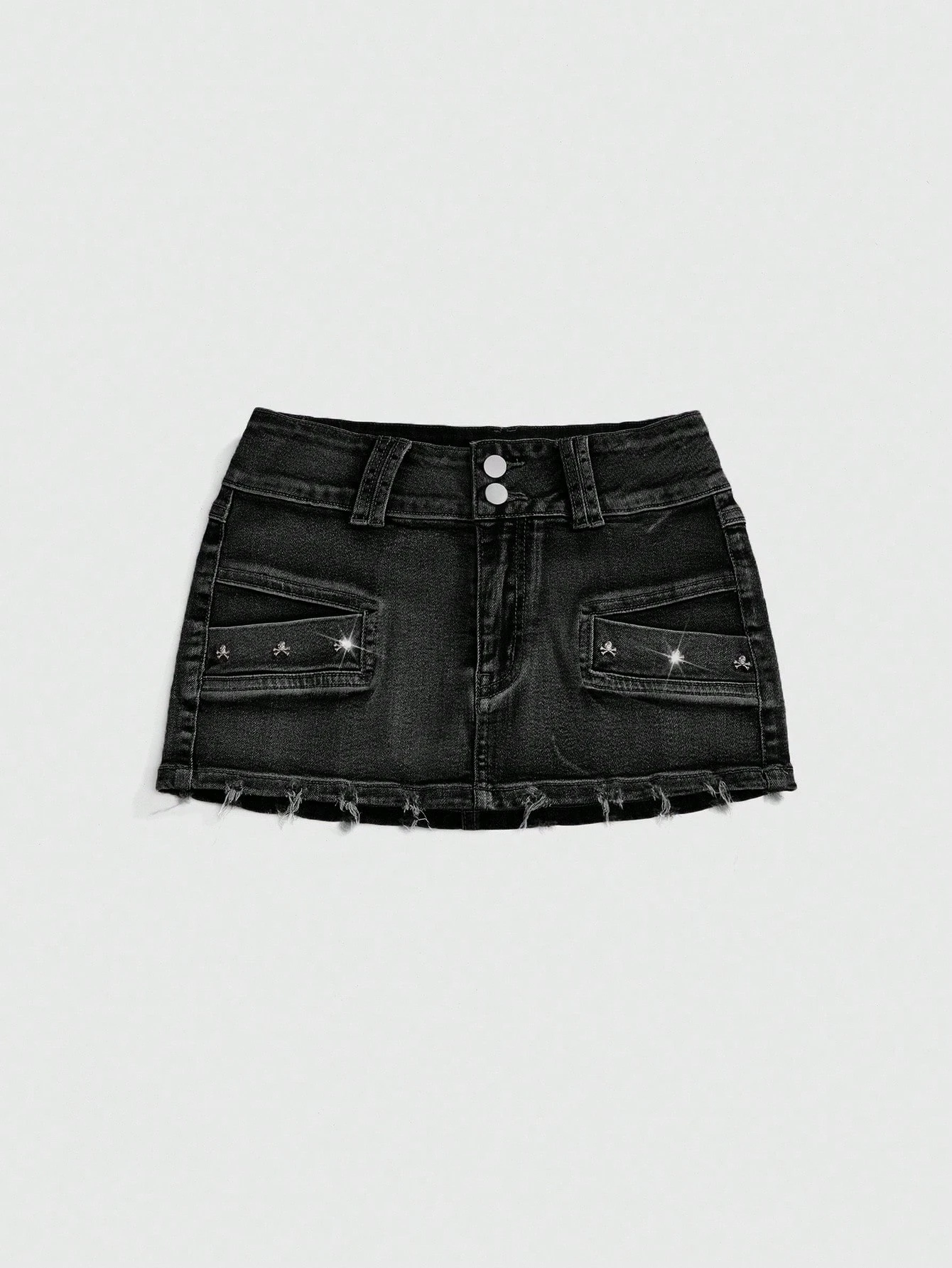 Grunge Punk Vintage Distressed Skull Studded Low Waist Sexy Denim Mini Skirt For Women