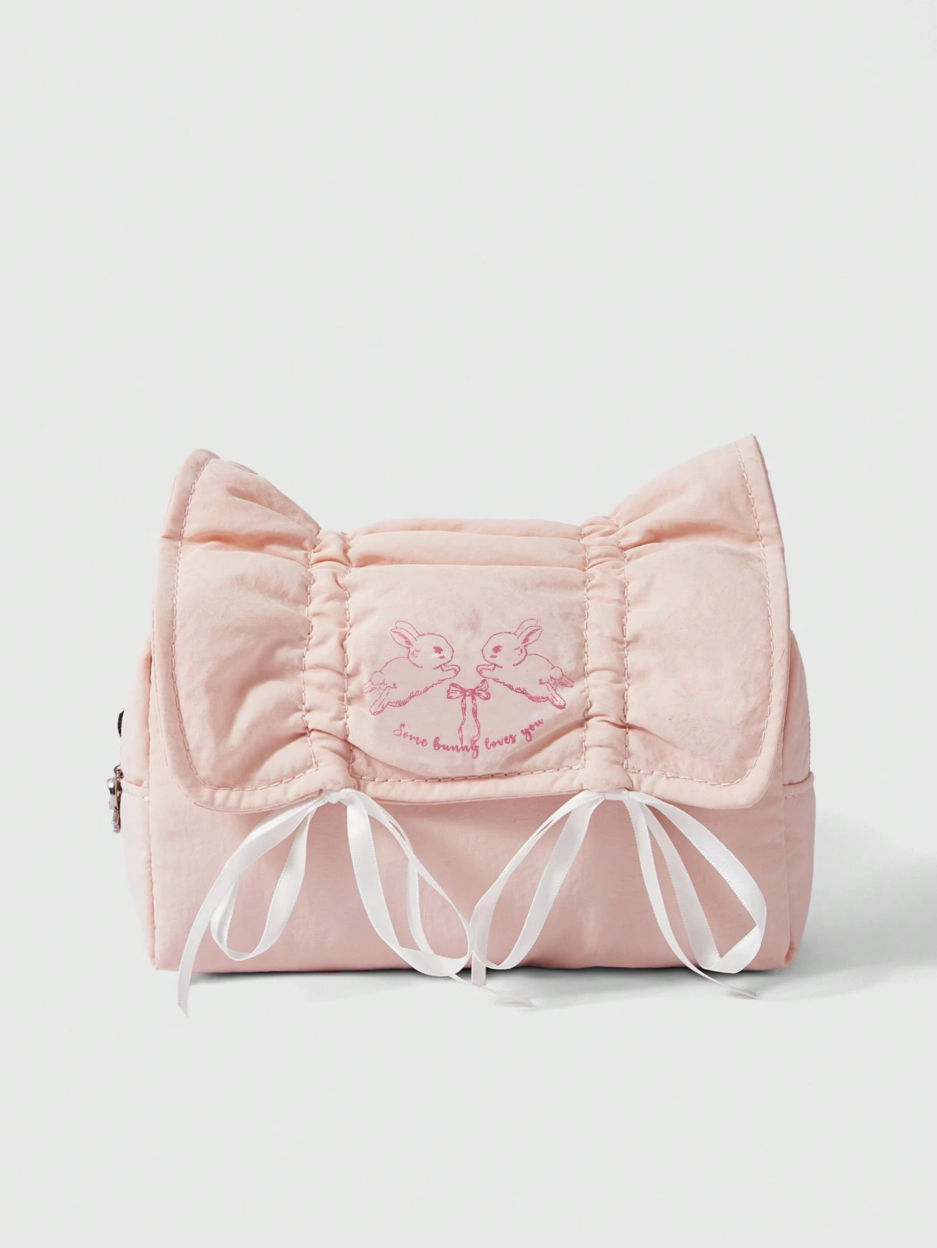 Kawaii Vintage Korean Style Cute Pink Drawstring Bow Decor Large Capacity Portable Cosmetic Bag & Pencil Case Set With Bow Zipper Pull