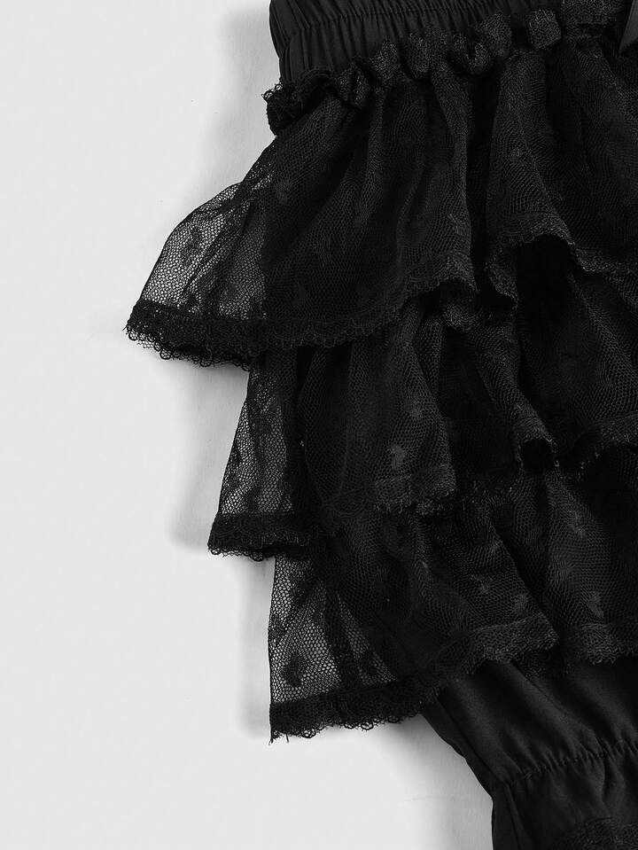 Vintage Palace Style Gothic Flocked Detachable Ruffle Tie Collar, Baroque Crystal Pendant, Bell Ruffle Sleeve Tie Waist Women Blouse