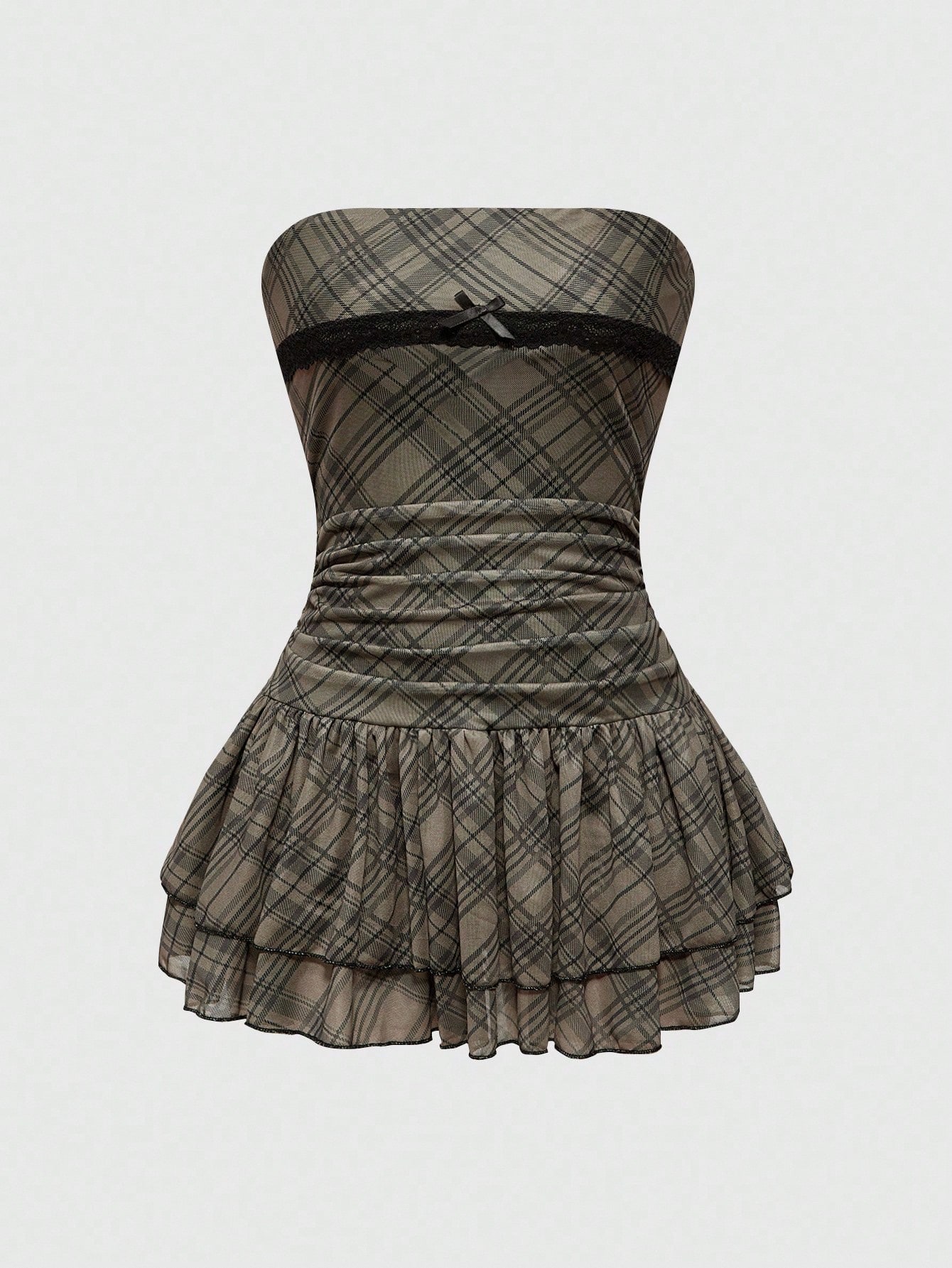 J-Fashion Vintage Sweet Plaid Print Skater Dress For Women