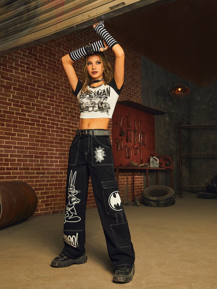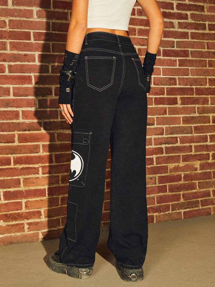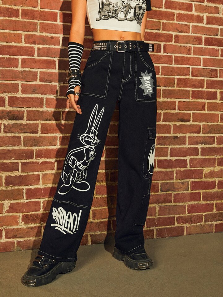 WB 100th | ROMWE Cartoon Graphic Flap Pocket Cargo Jeans
