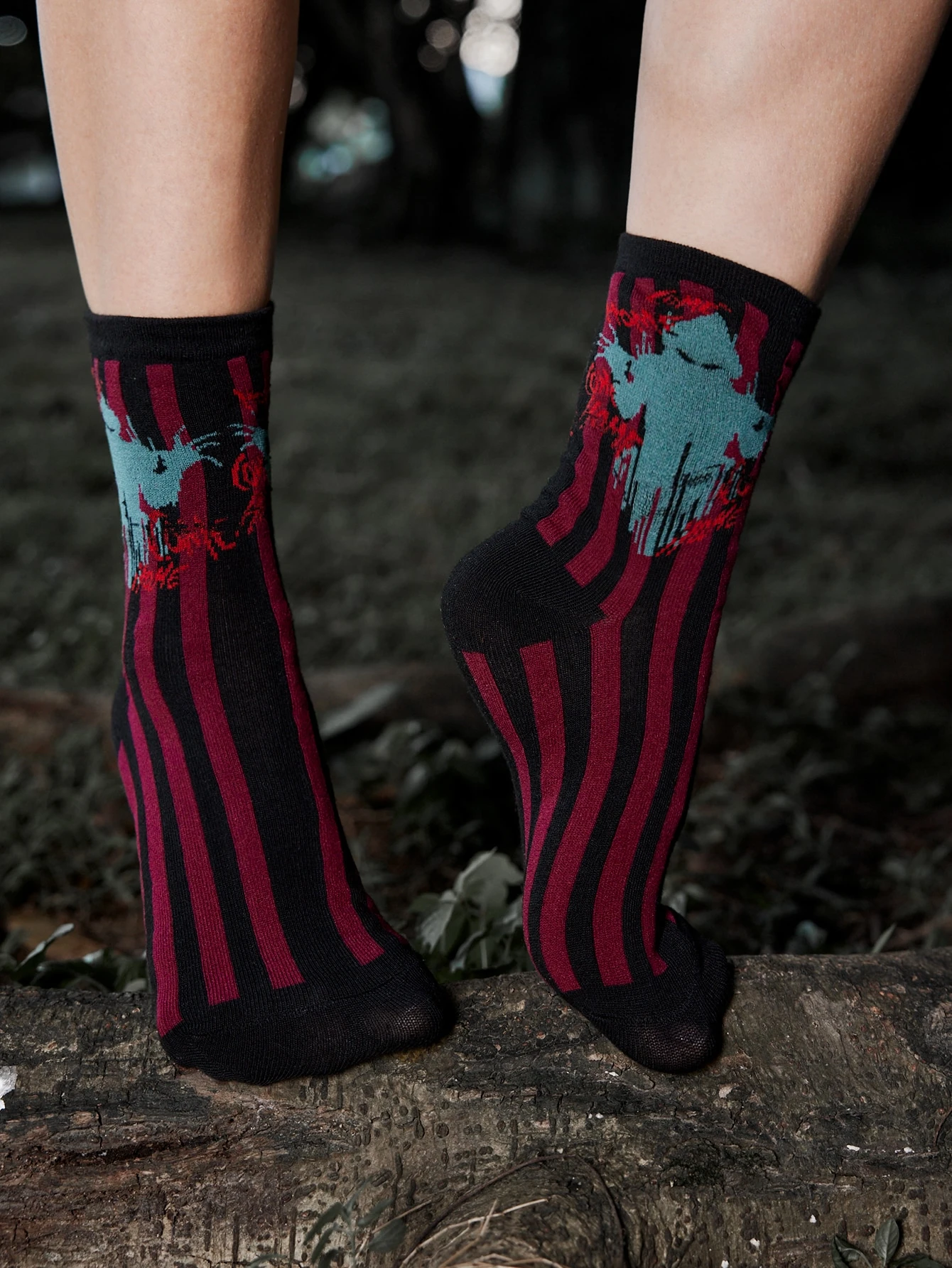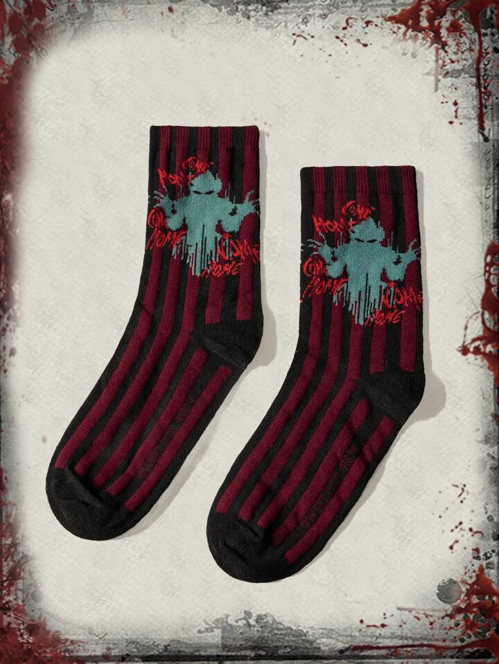 WB Horror | ROMWE Striped & Monster Pattern Crew Socks