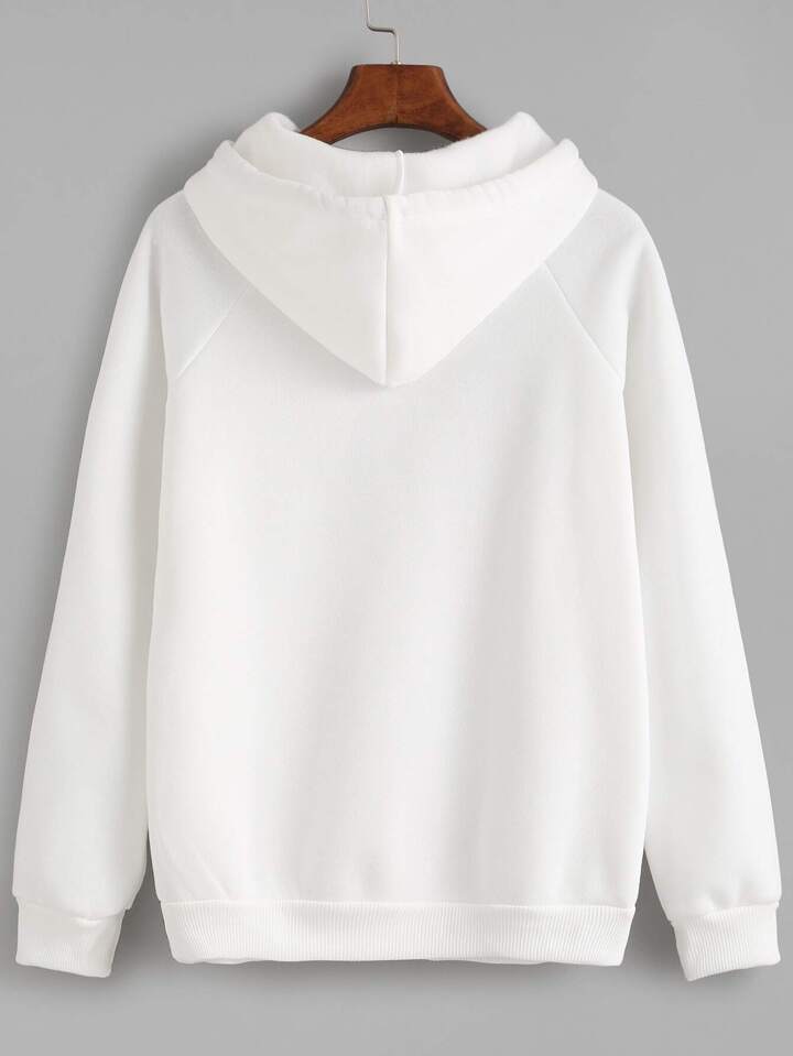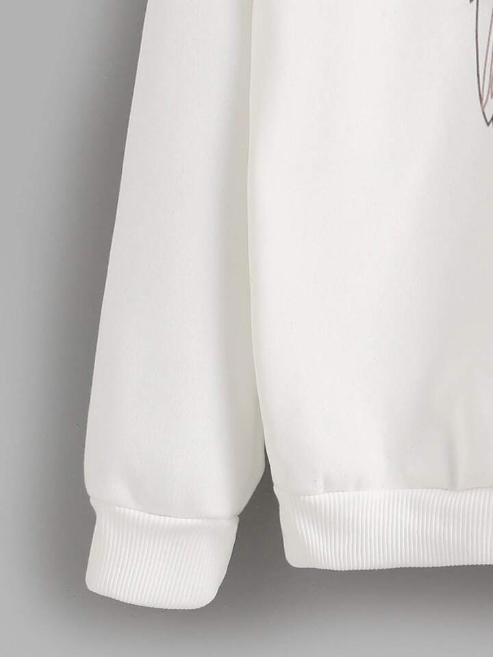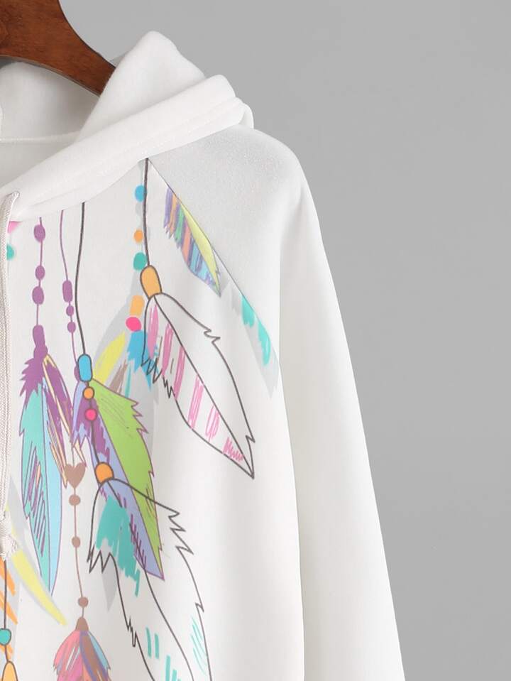 White Feather Print Hooded Sweatshirt