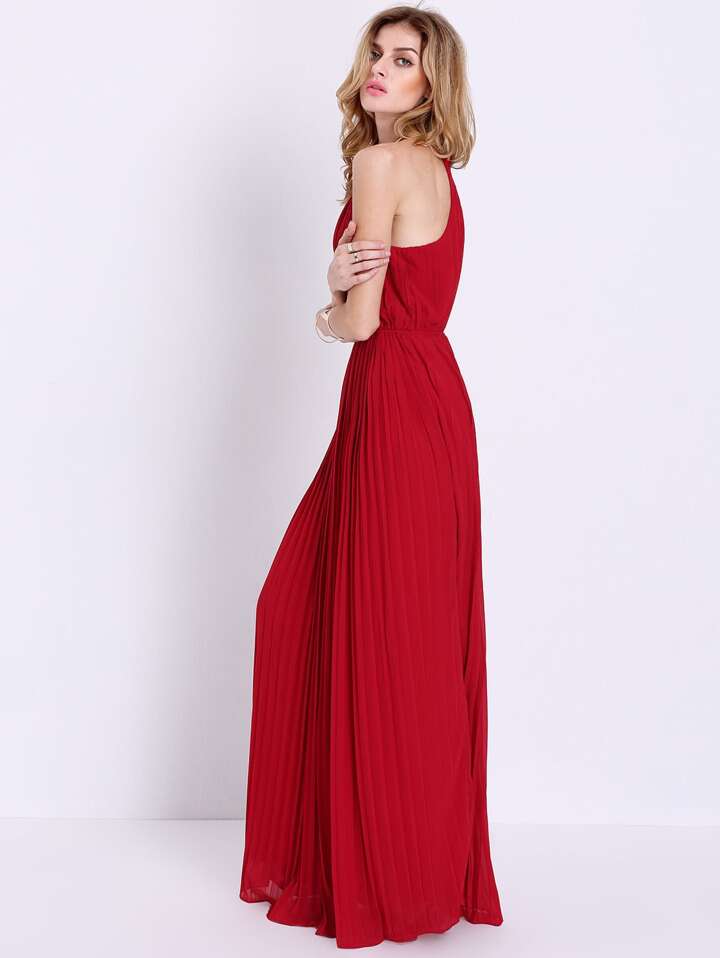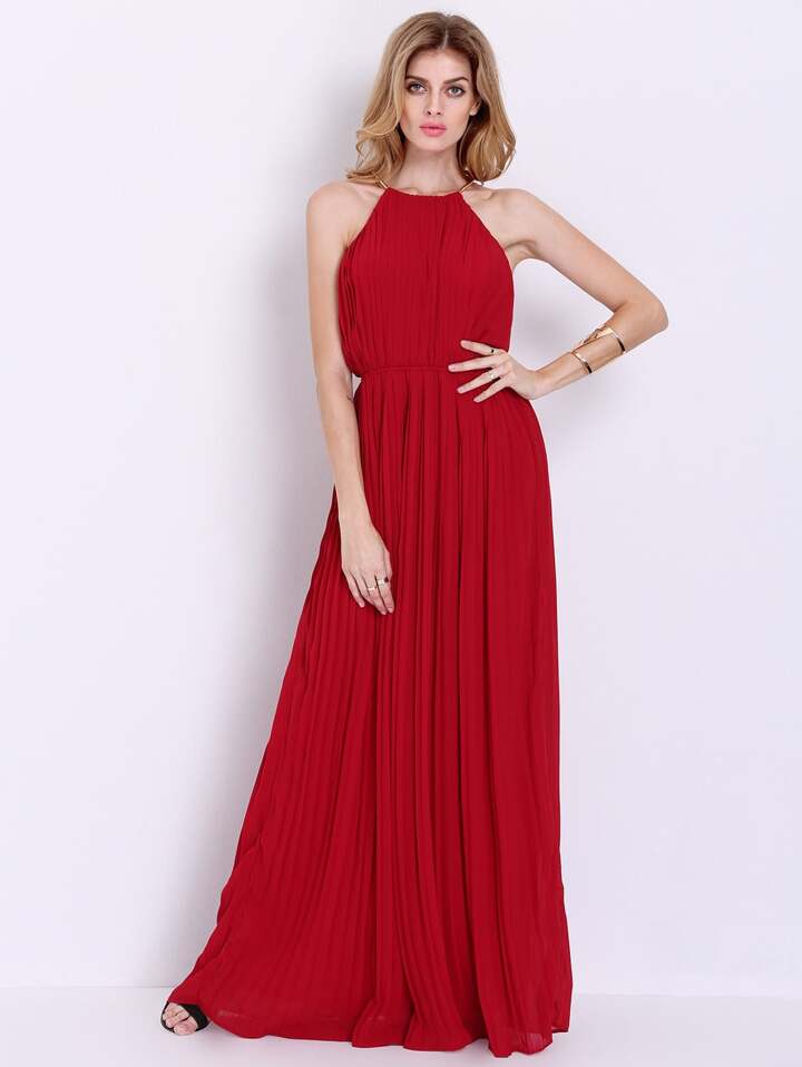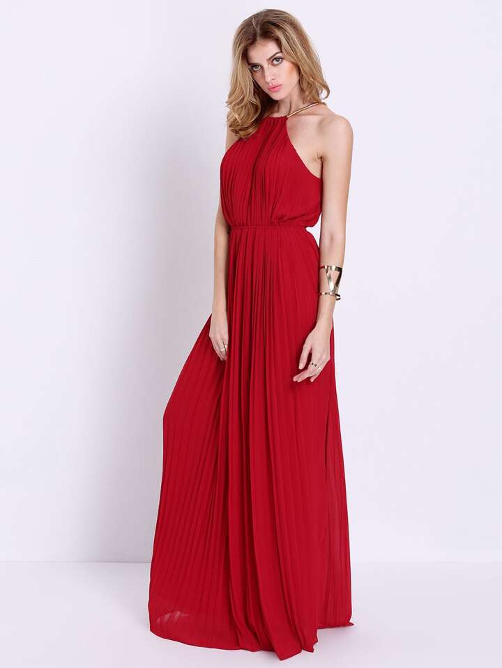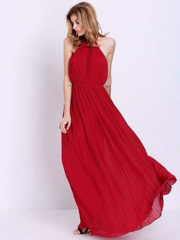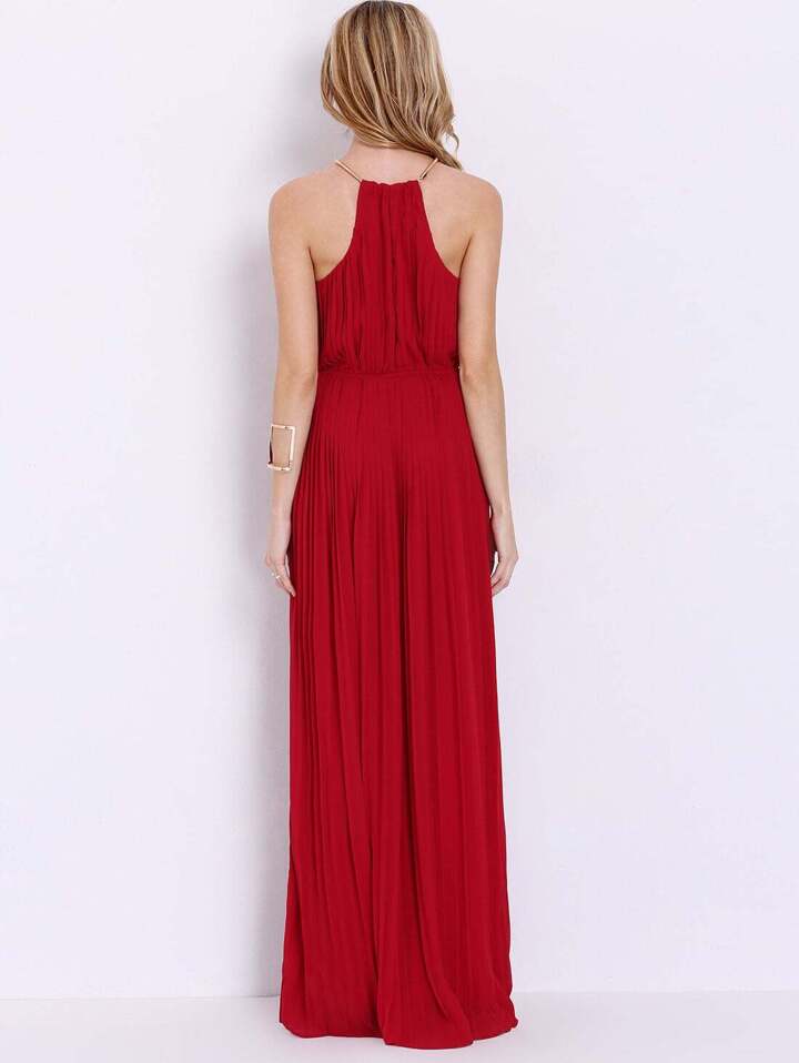 Wine Red Evening Sleeveless Halterneck Pleated Infinity Maxi Dress