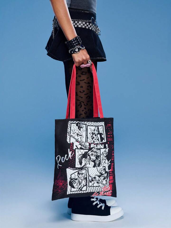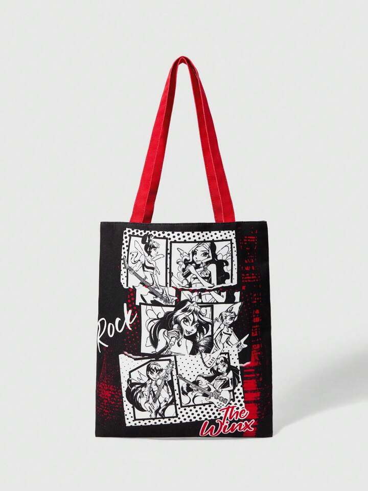 Winx Club X ROMWE Cartoon Printed Fashion Portable Tote Shoulder Bag For Women