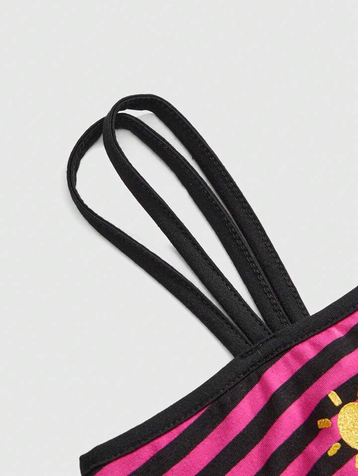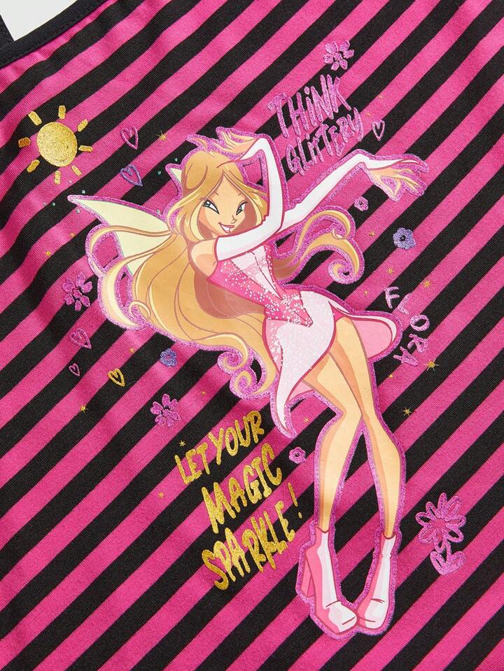 Winx Club X ROMWE Women's Asymmetrical Neck Striped & Cartoon Portrait Pattern Top