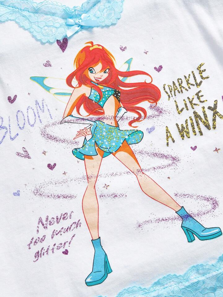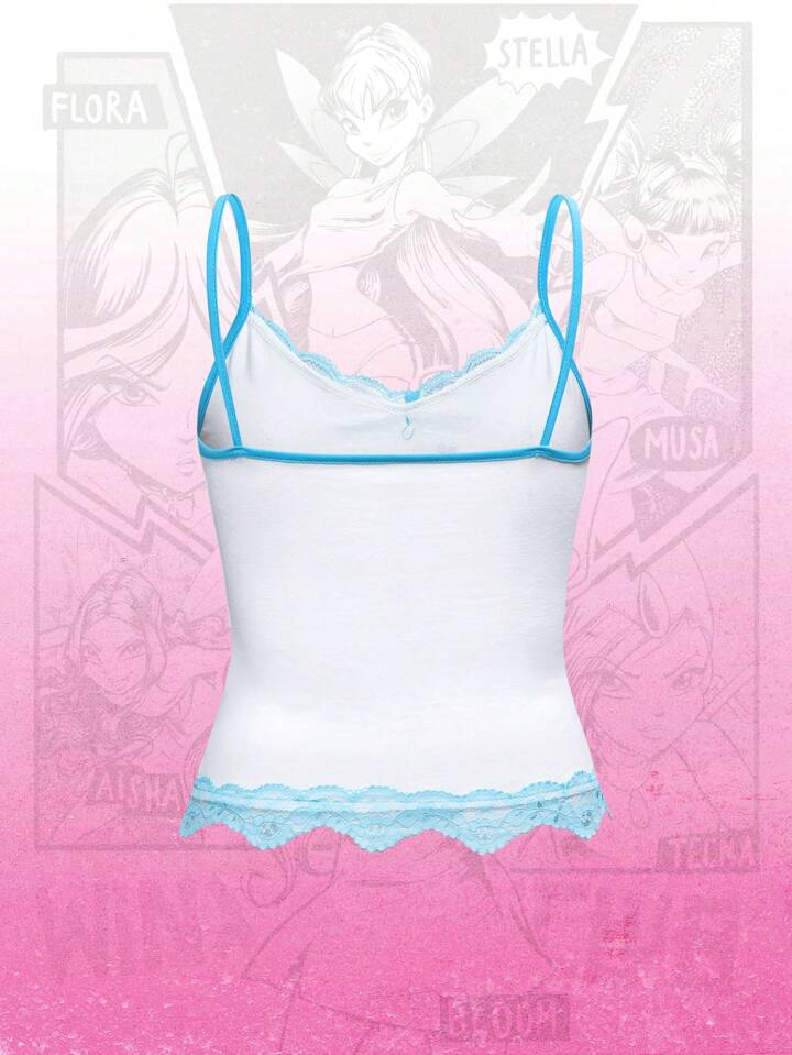 Winx Club X ROMWE Y2K Style Women's Lace Camisole Top With Floral Print, Suitable For Spring/Summer