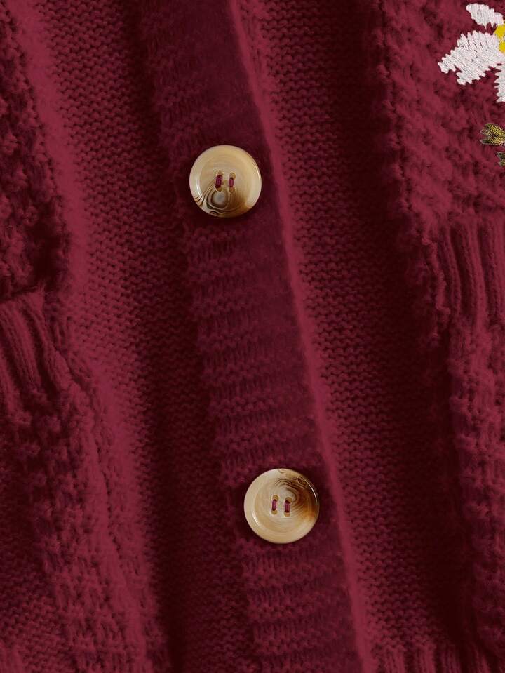 Fairycore Women's Casual Floral Embroidery Button Front Cardigan, Autumn/Winter