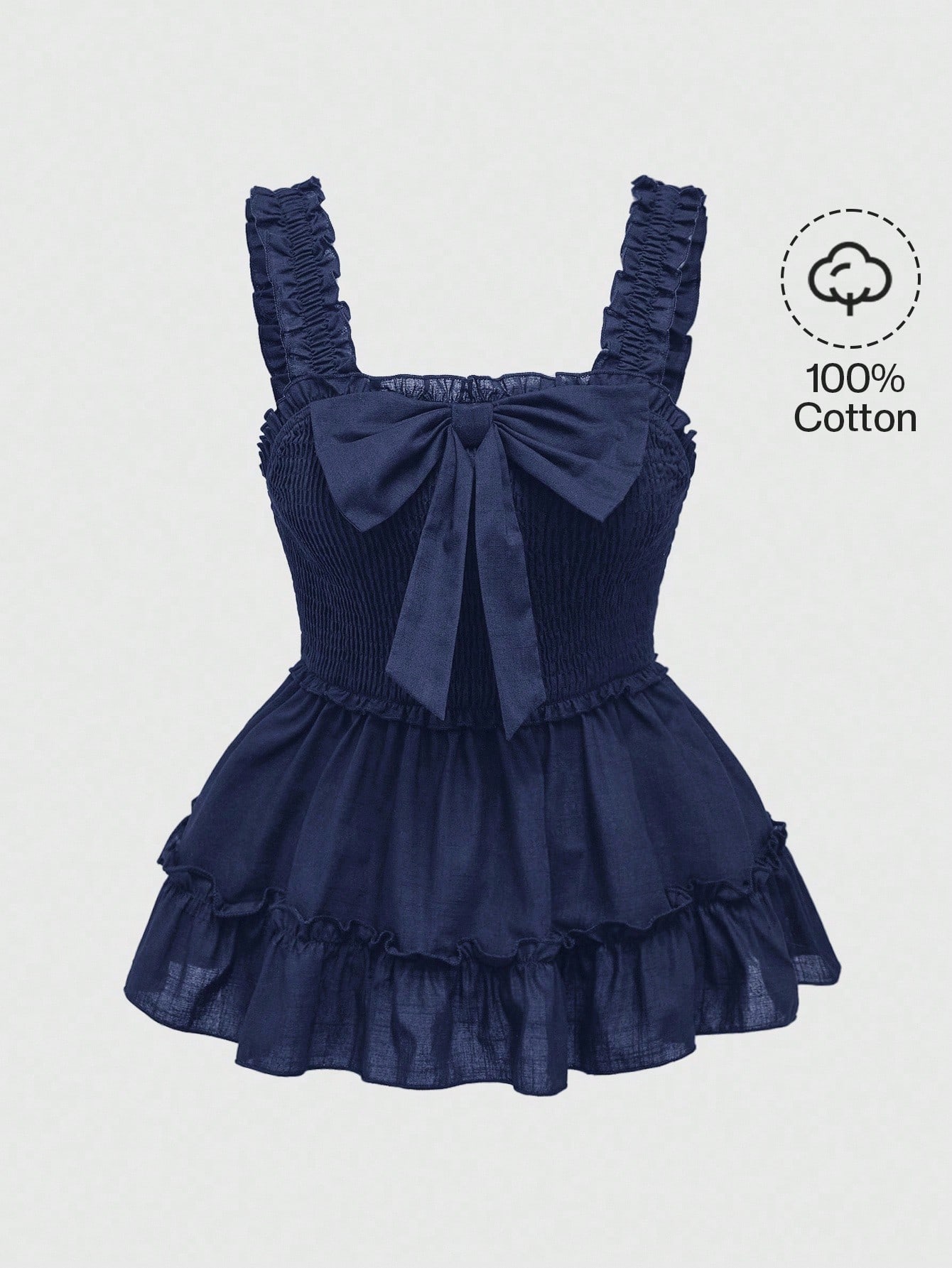 Kawaii Women's Casual Solid Color Bow Decor Camisole, Summer