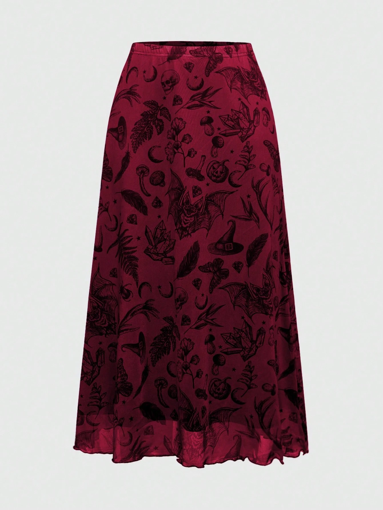 Fairycore Women's Dark Gothic Style Bat, Skull, Moon, Pumpkin Print A-Line Punk Mini Skirt